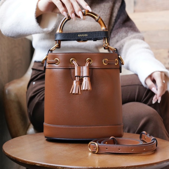 구찌 1955 홀스빗 블랙 레더 버킷백 카멜