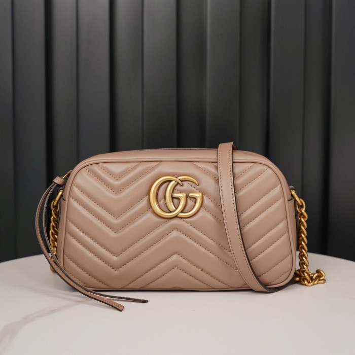 구찌 GG 마몽 마틀라세 스몰 숄더백 누드 금장