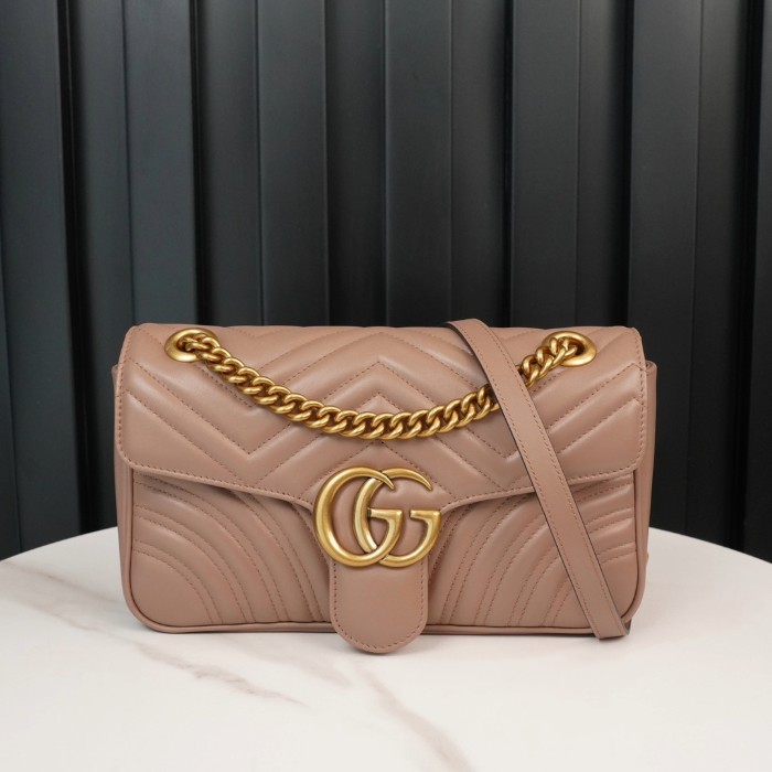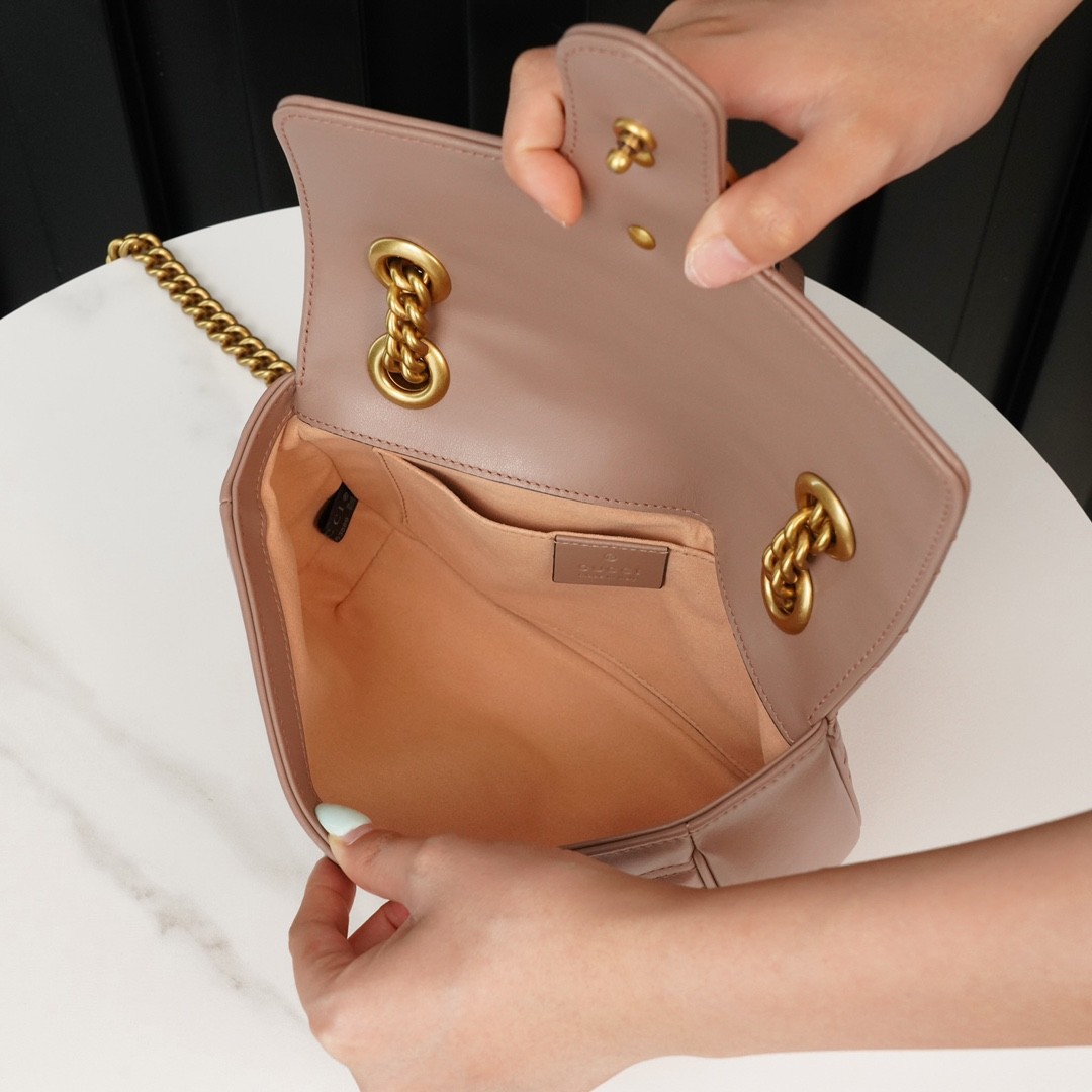 구찌 GG 마몽 마틀라세 스몰 체인 숄더백 누드
