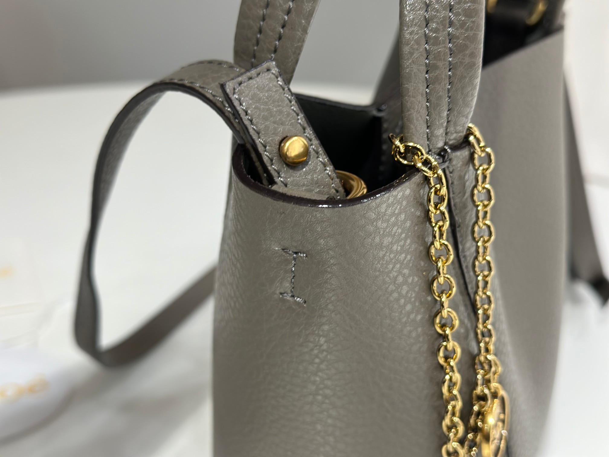 끌로에 그레인드 레더 스핀 스몰 토트백 클레이 그레이