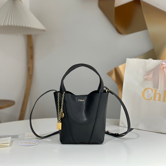 끌로에 그레인드 레더 스핀 스몰 토트백 클레이 블랙