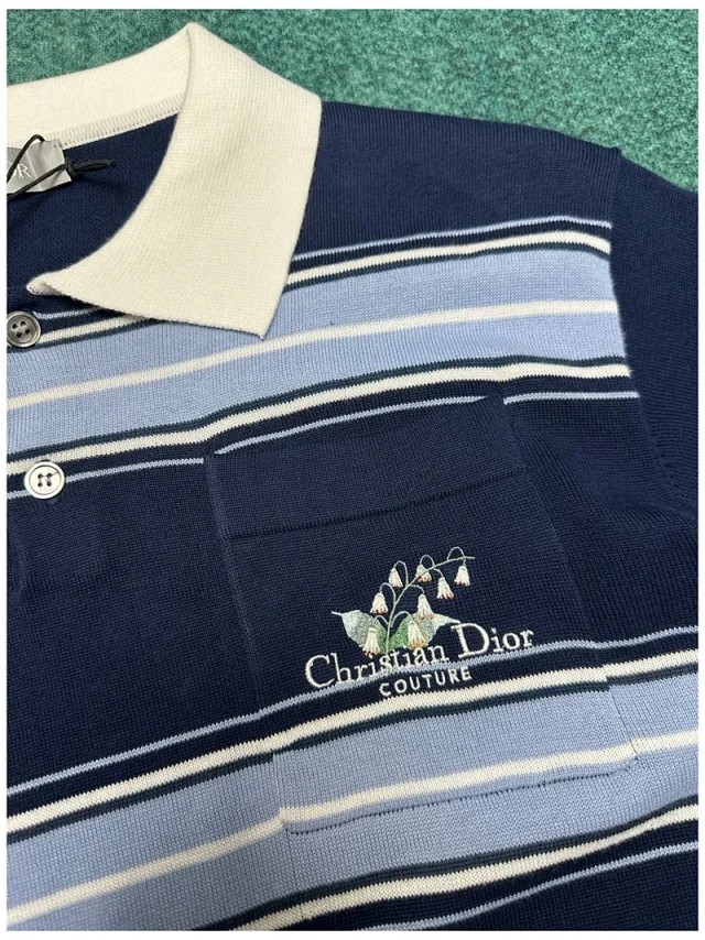 디올 꾸뛰르 스트라이프 폴로 반팔 티셔츠