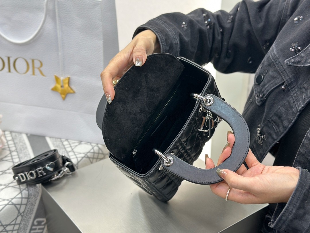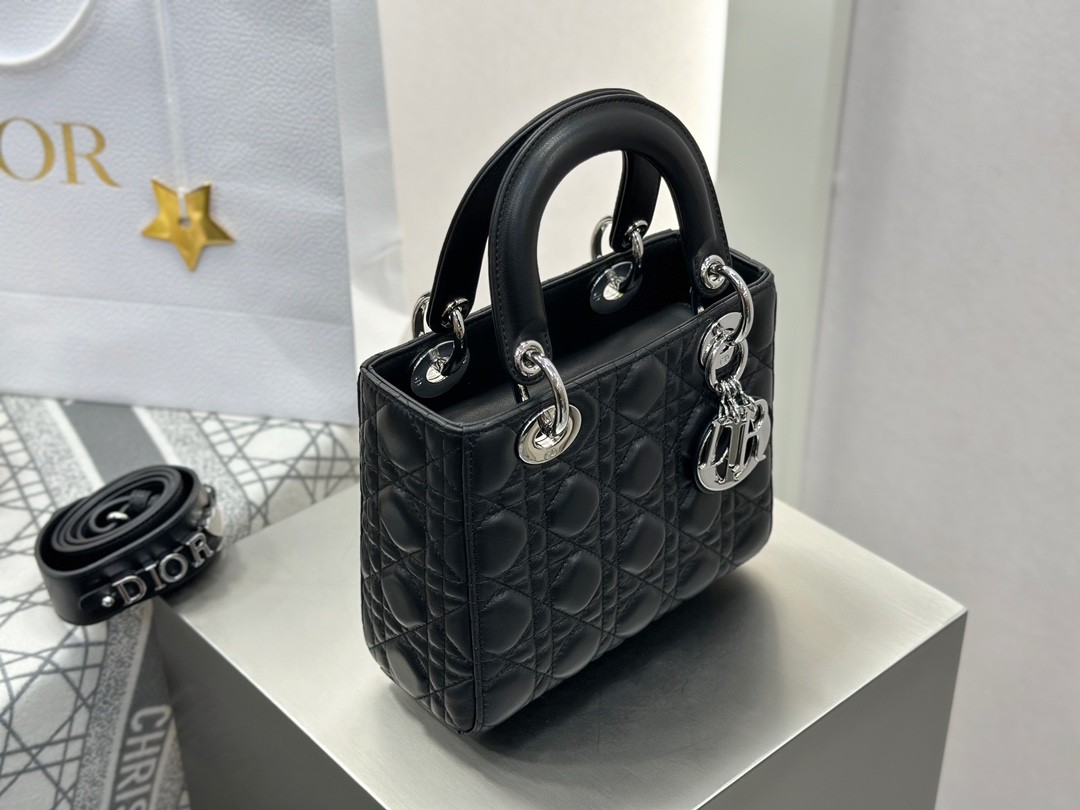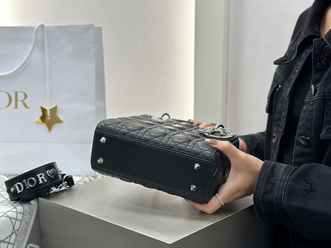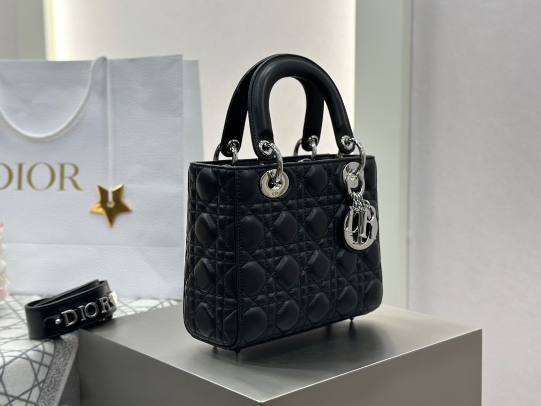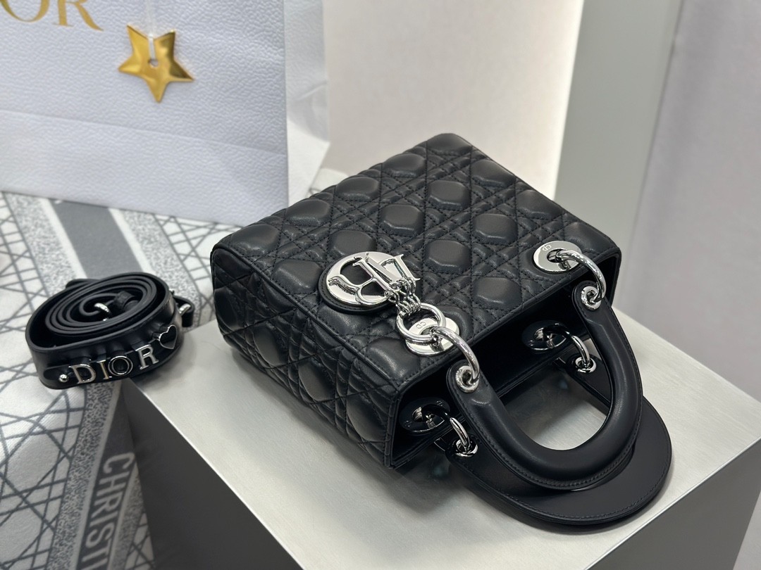 디올 레이디 디올 미디엄 백 ABC 스몰 블랙 실버버클