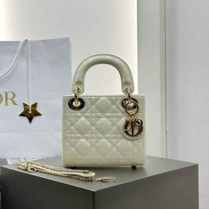 디올 미니 레이디백 페이턴트 까나쥬 라떼