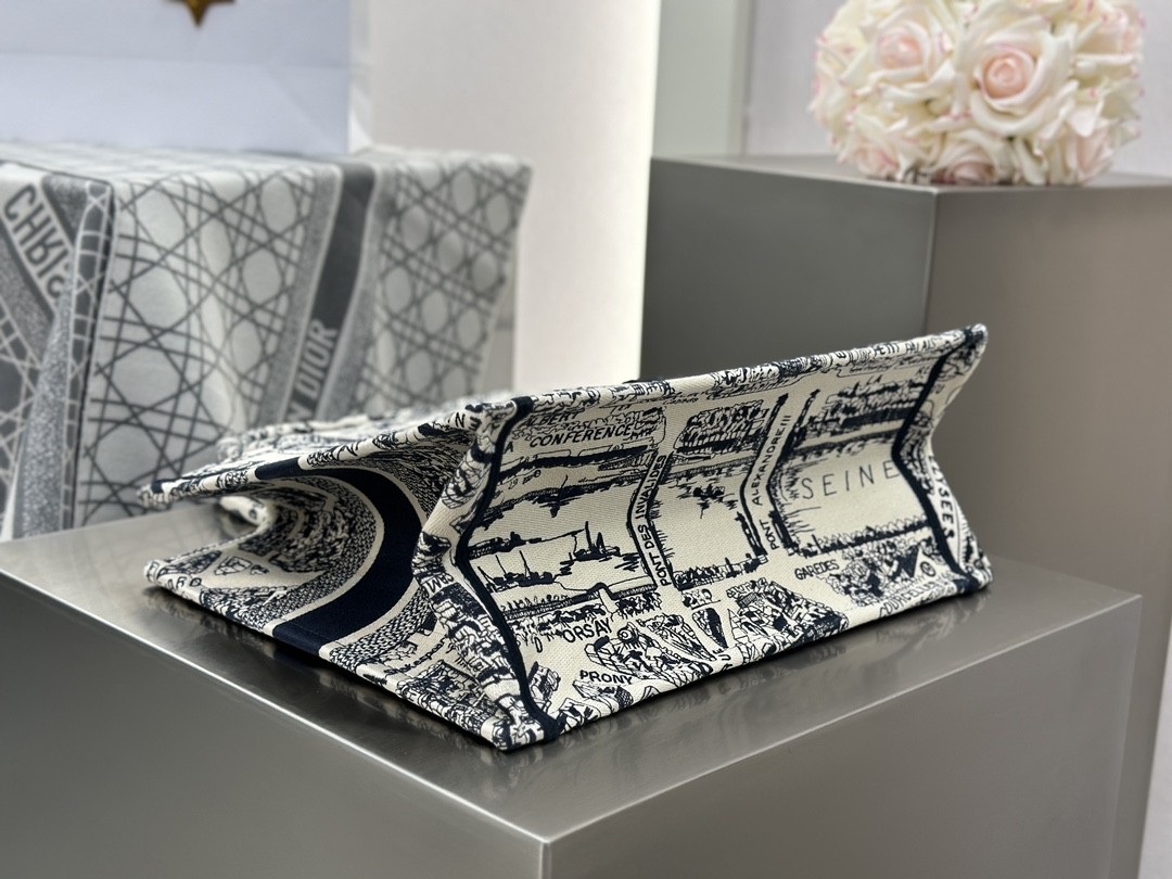 디올 미디엄 북 토트백 라떼 블랙 플랜 드 파리 자수