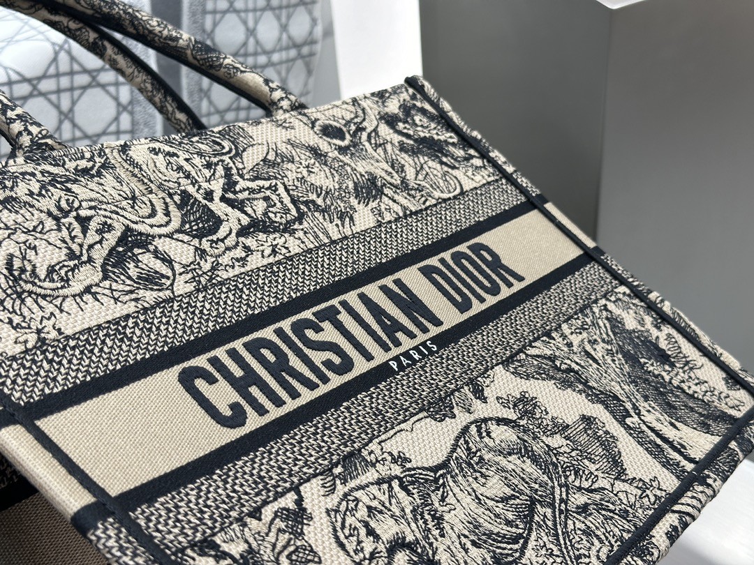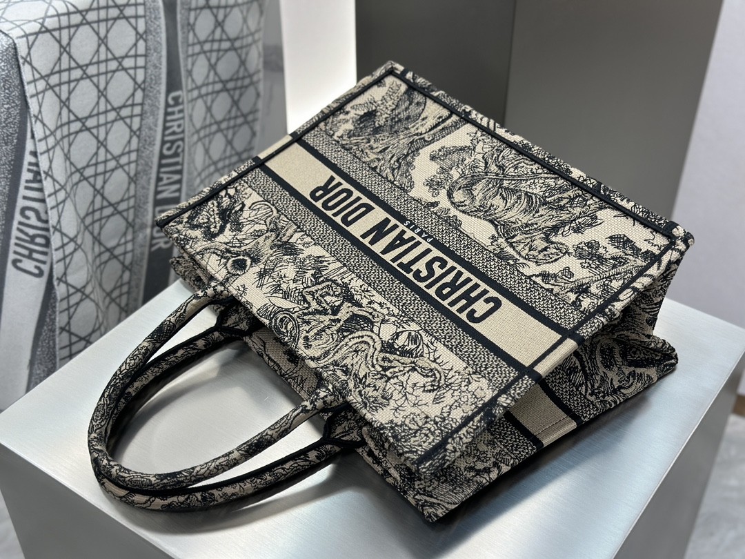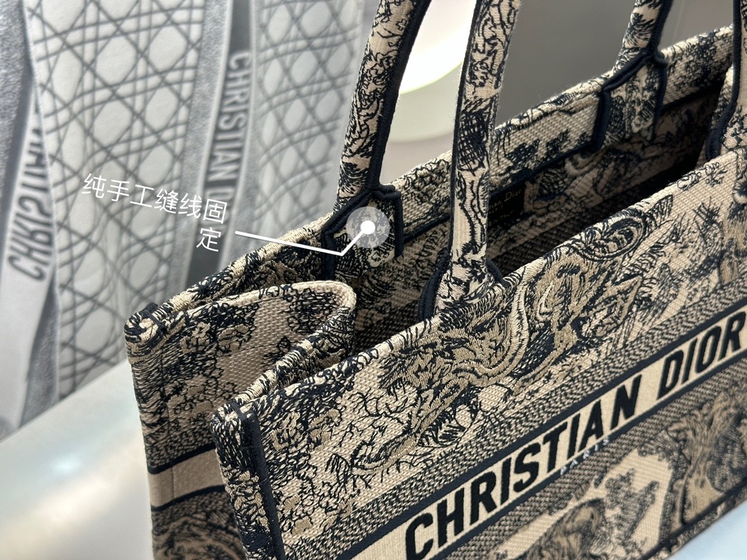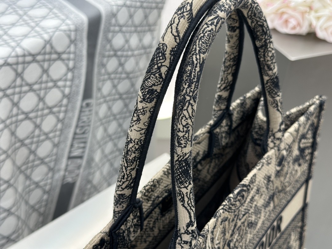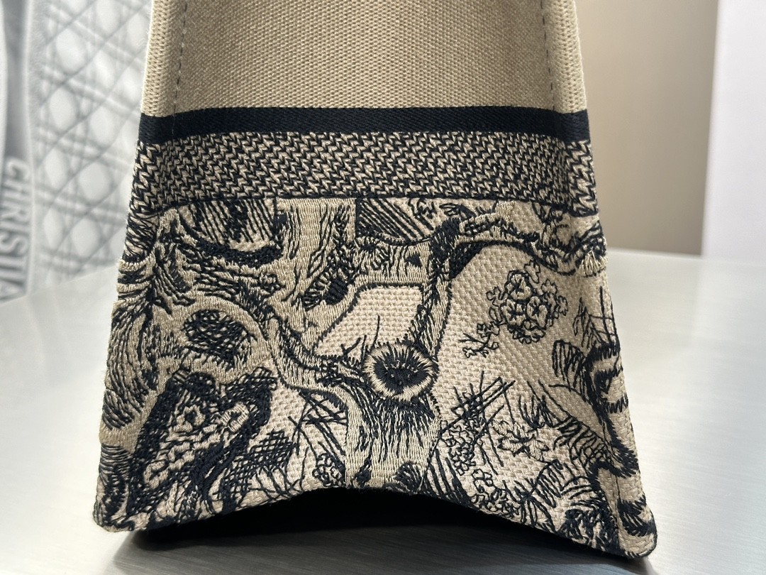 디올 미디엄 북 토트백 베이지 트왈 드 주이 자수