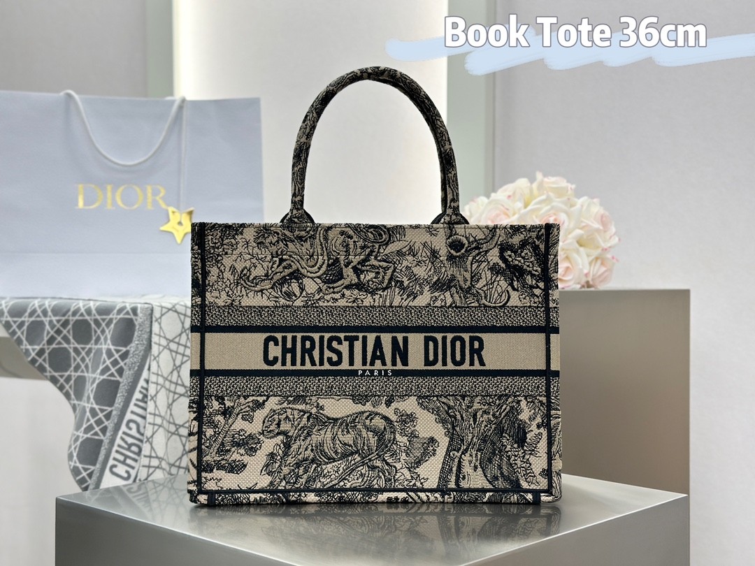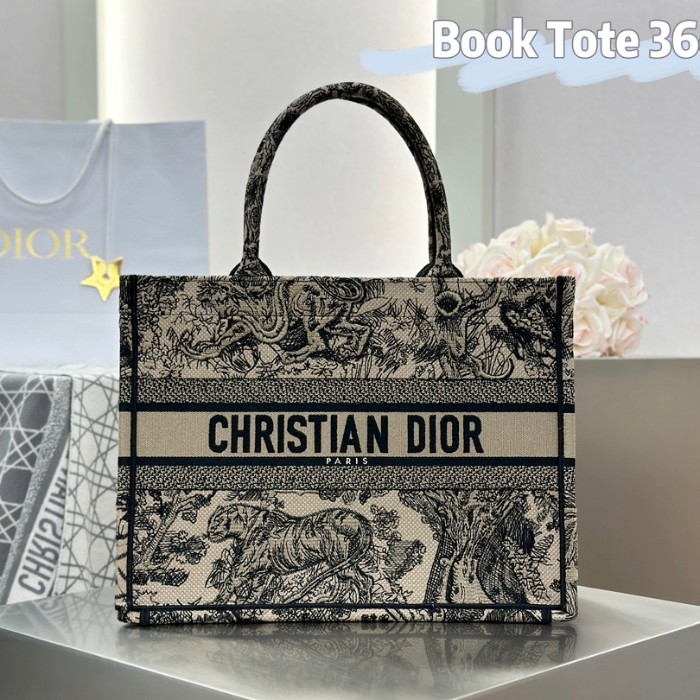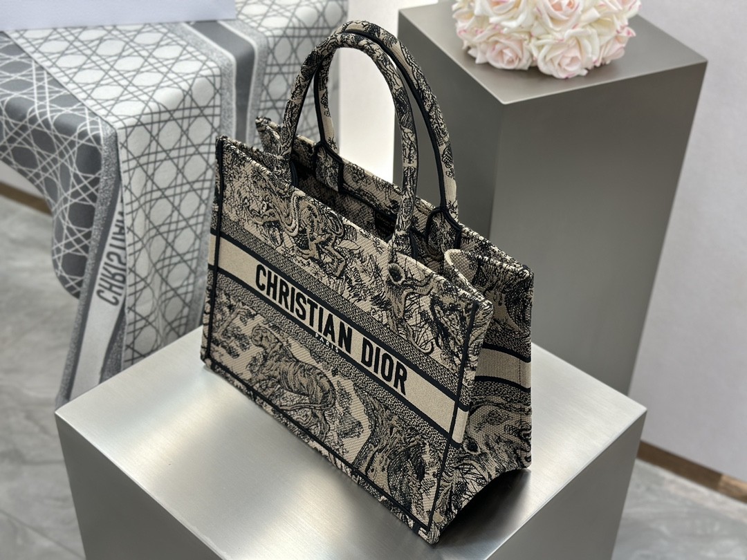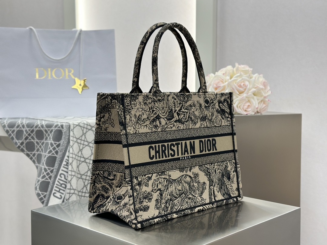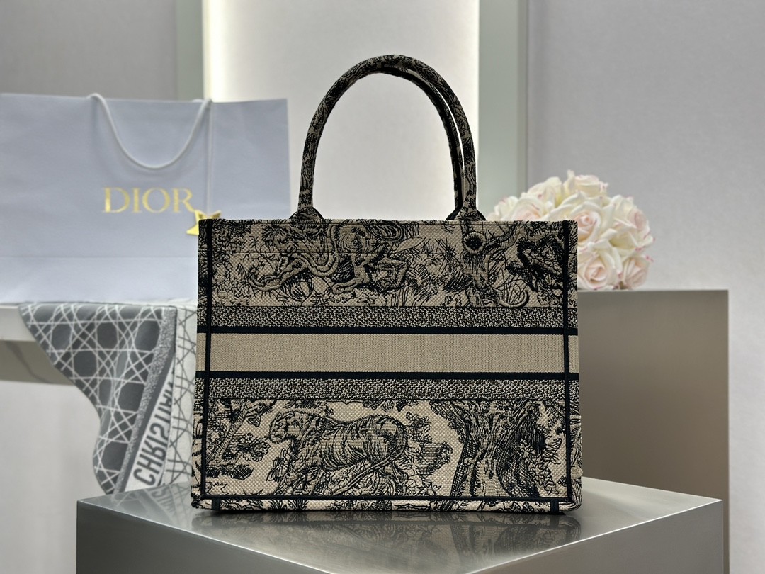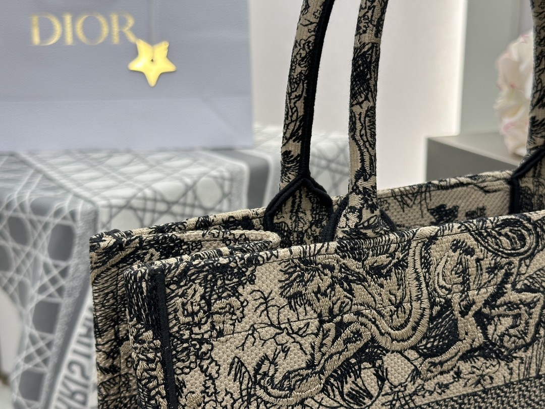 디올 미디엄 북 토트백 베이지 트왈 드 주이 자수