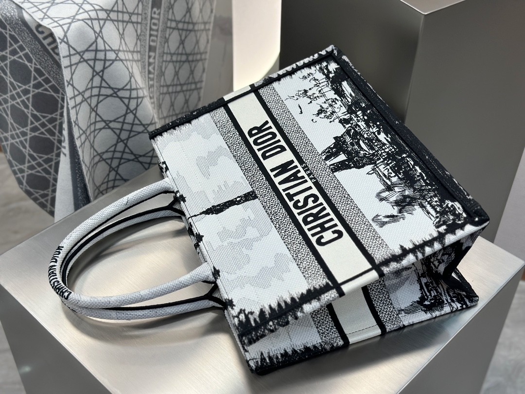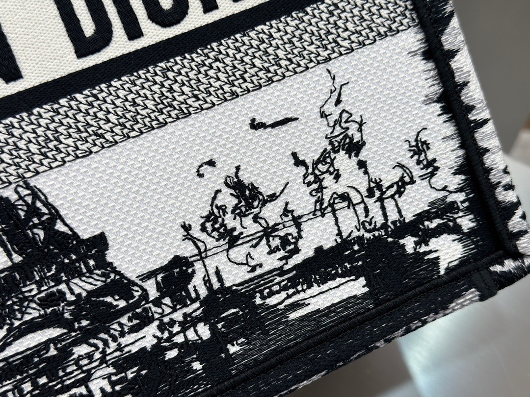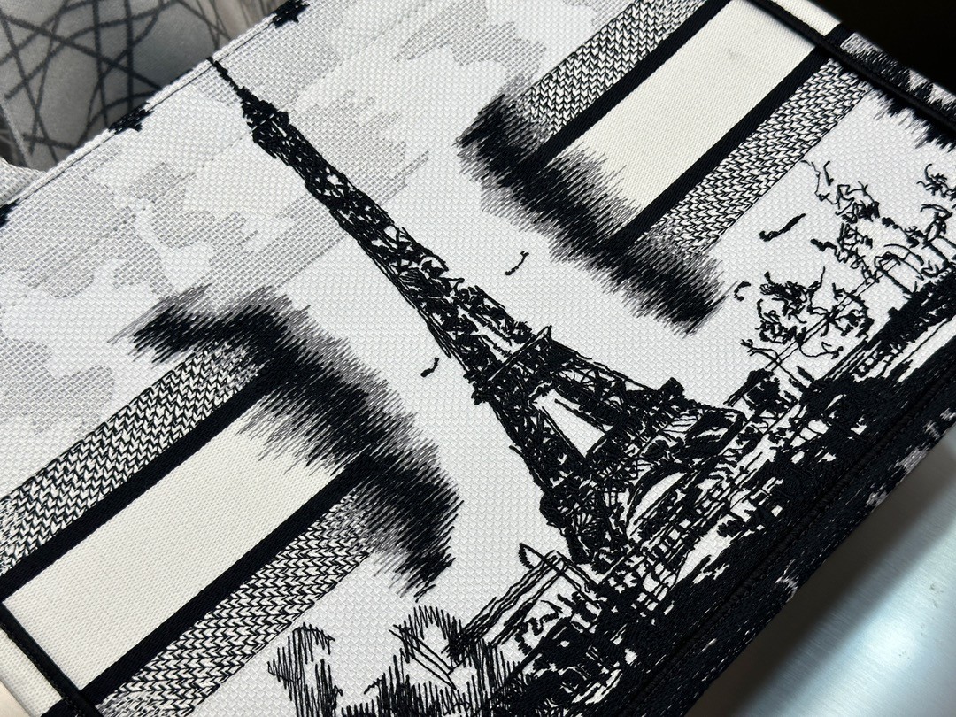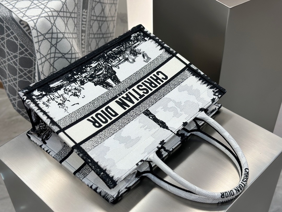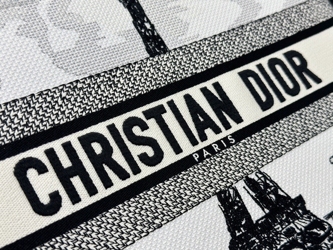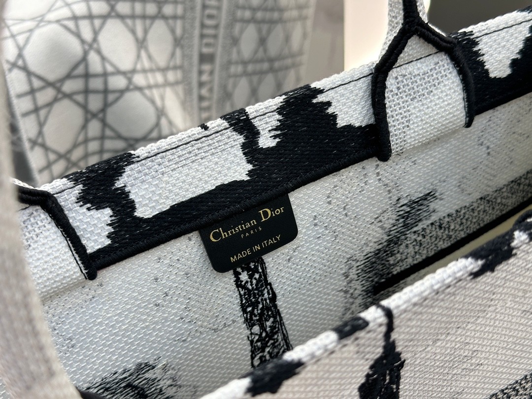 디올 미디엄 북 토트백 파리 자수 화이트 블랙