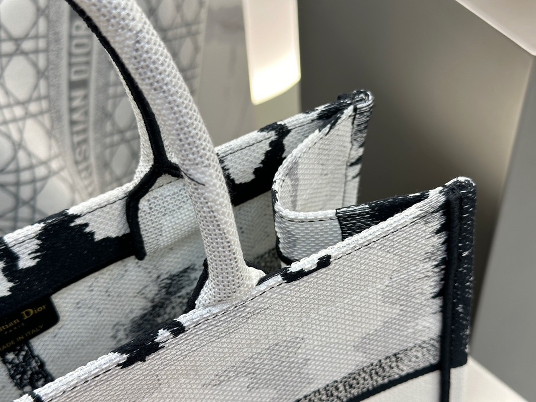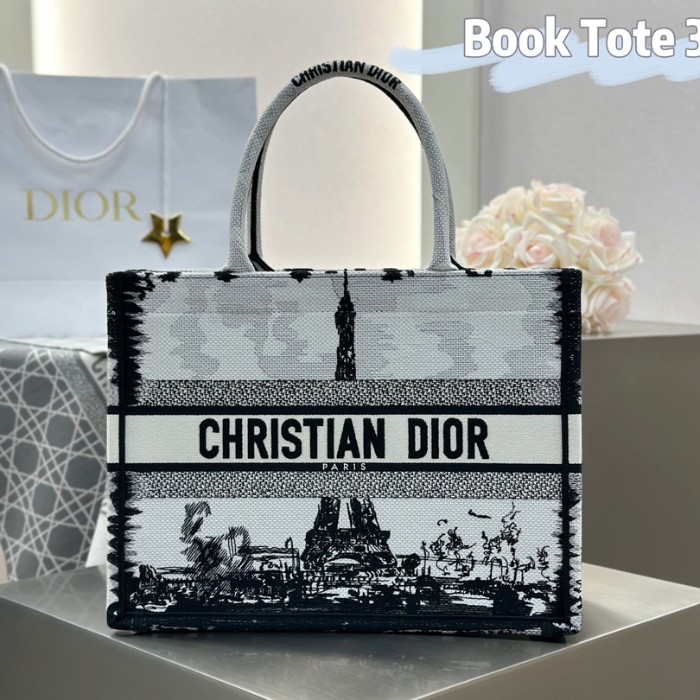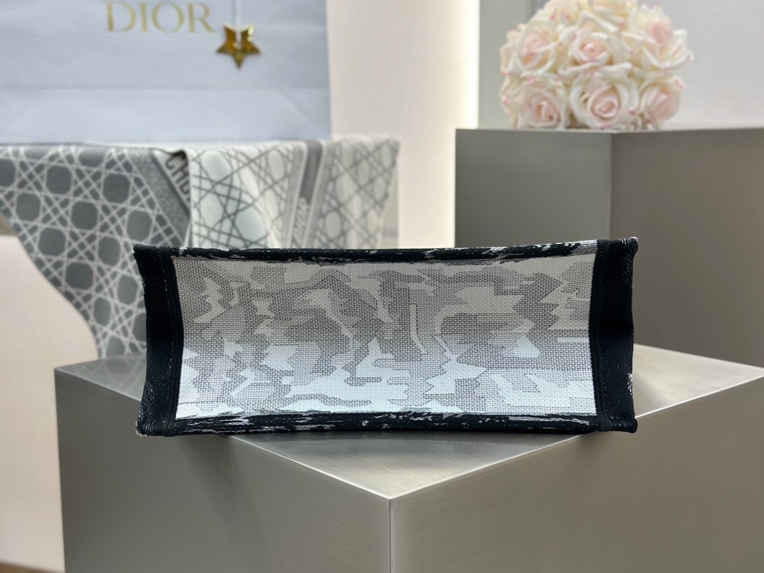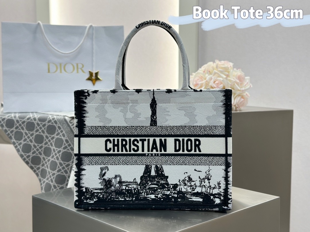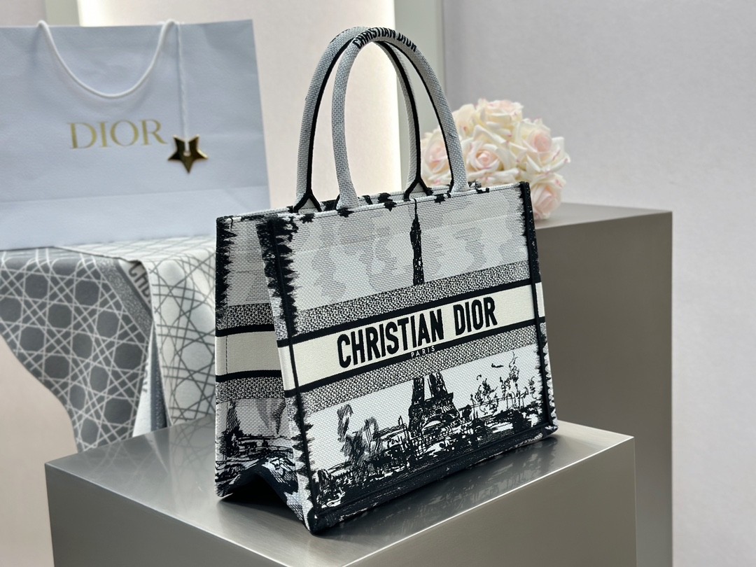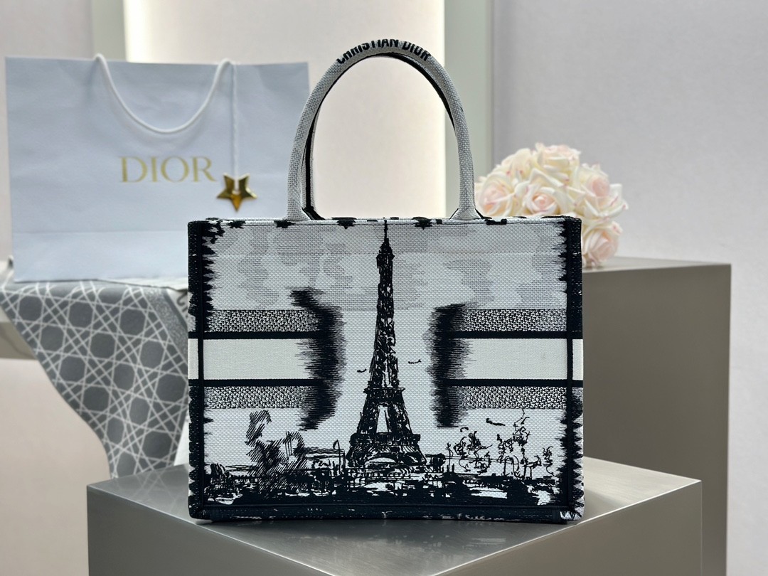 디올 미디엄 북 토트백 파리 자수 화이트 블랙