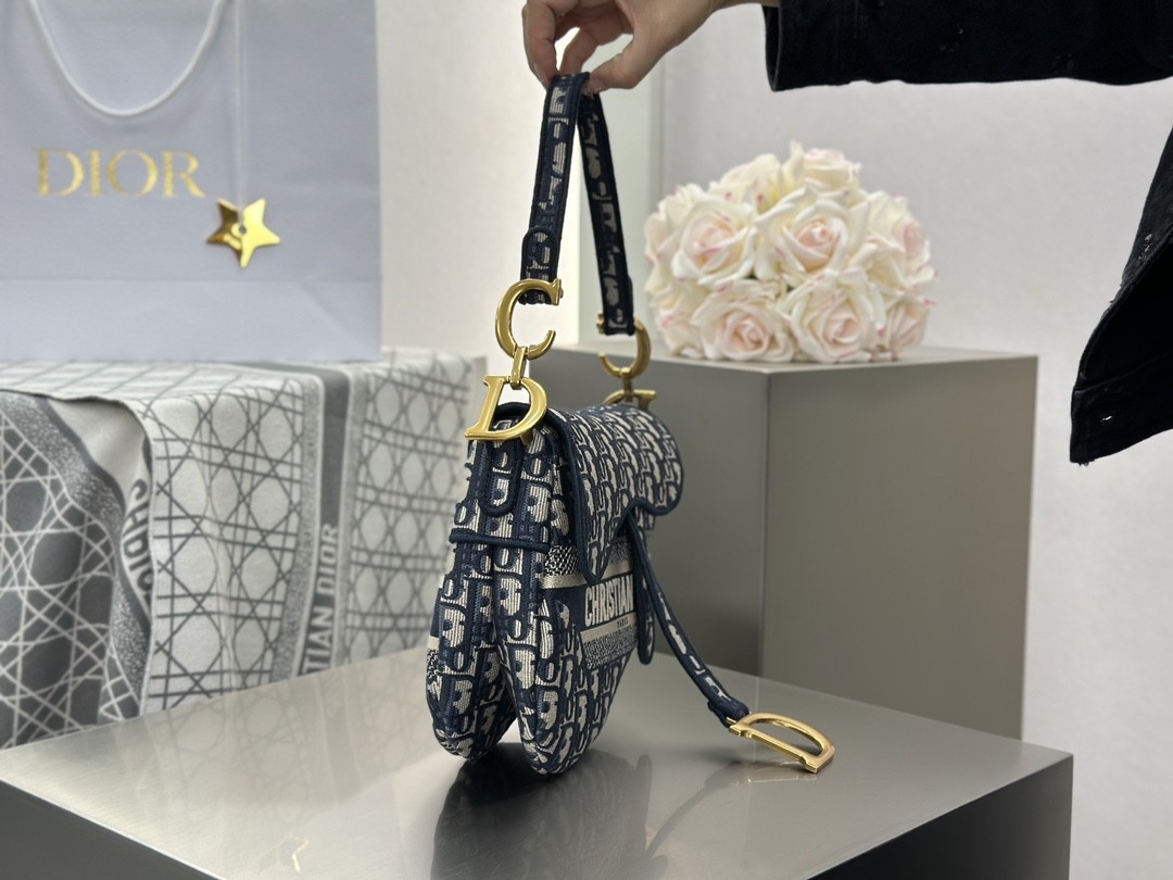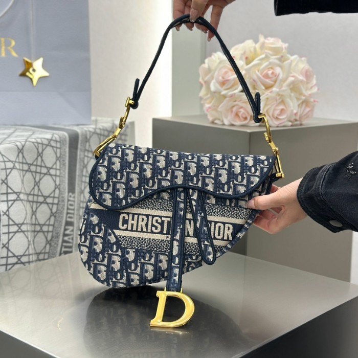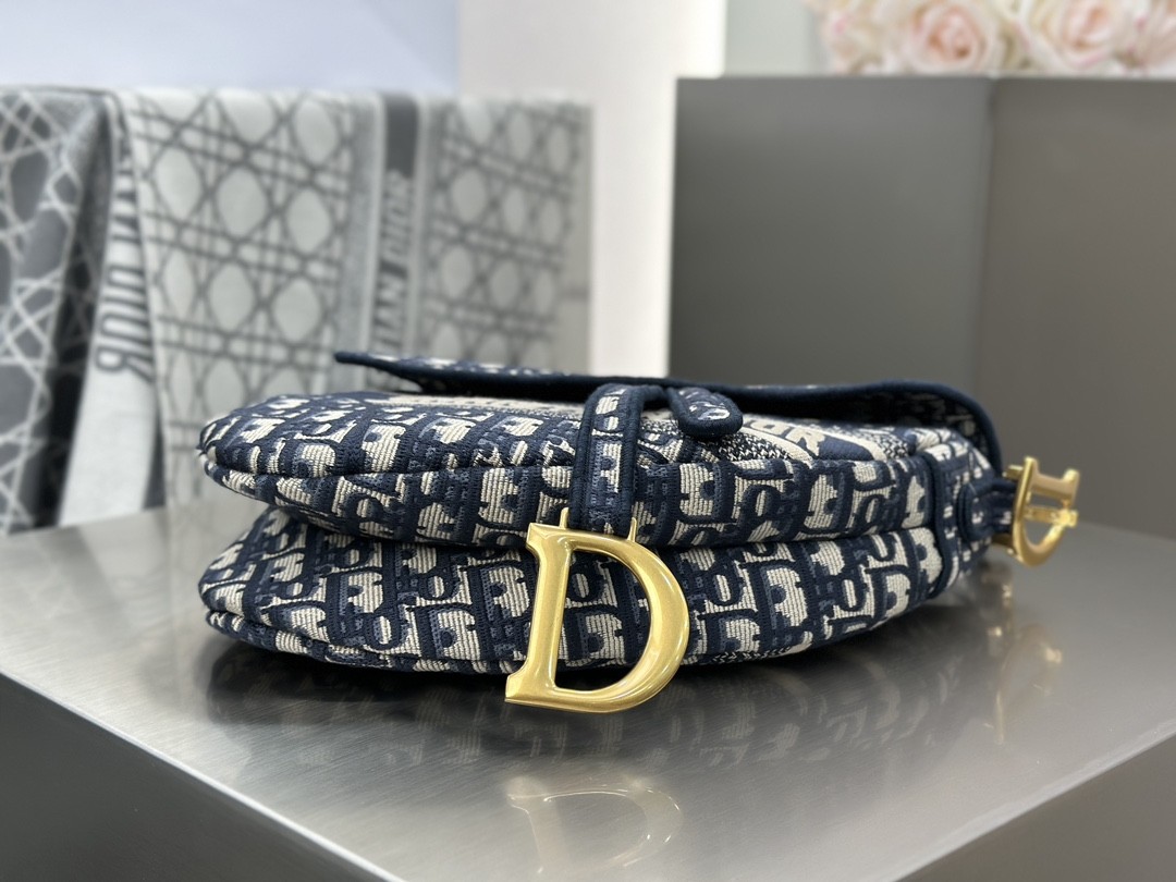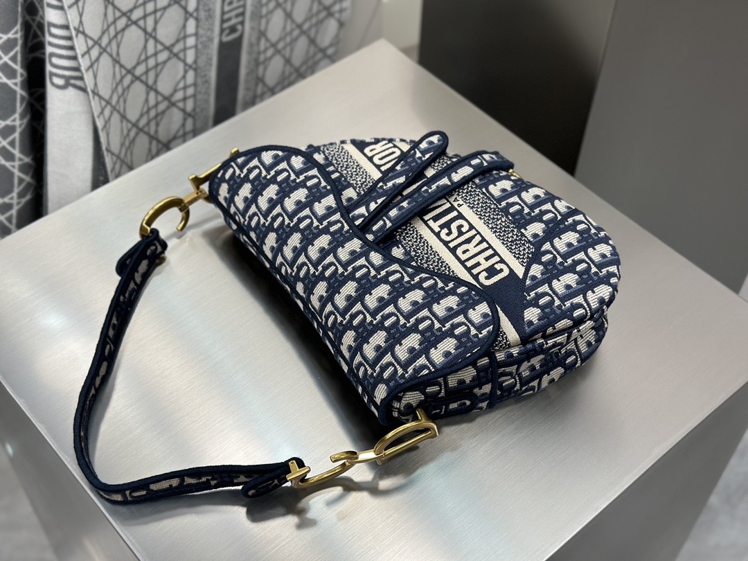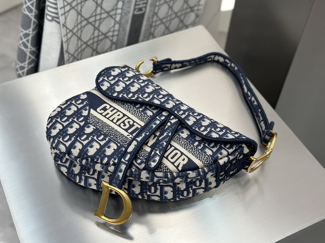 디올 미디엄 새들 스트랩 백 오블리크 자카드 패브릭