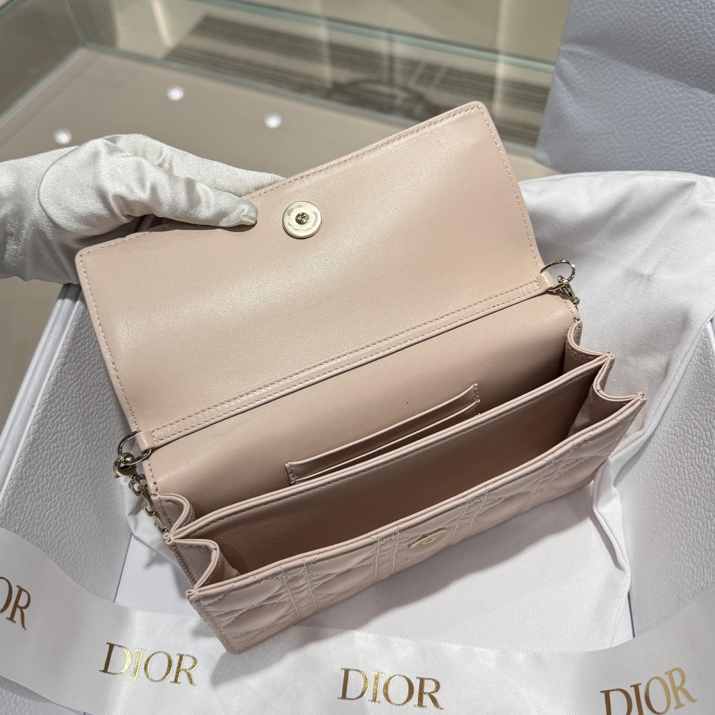 디올 미스 디올 미니 탑 핸들백 샌드 컬러드 까나쥬 램스킨