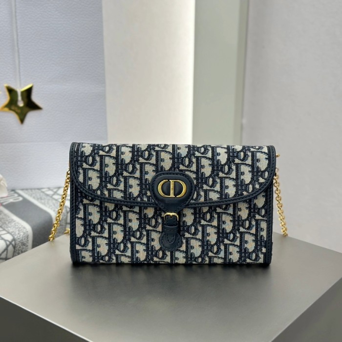 디올 바비 이스트웨스트 체인 파우치 블루 디올 오블리크 자카드