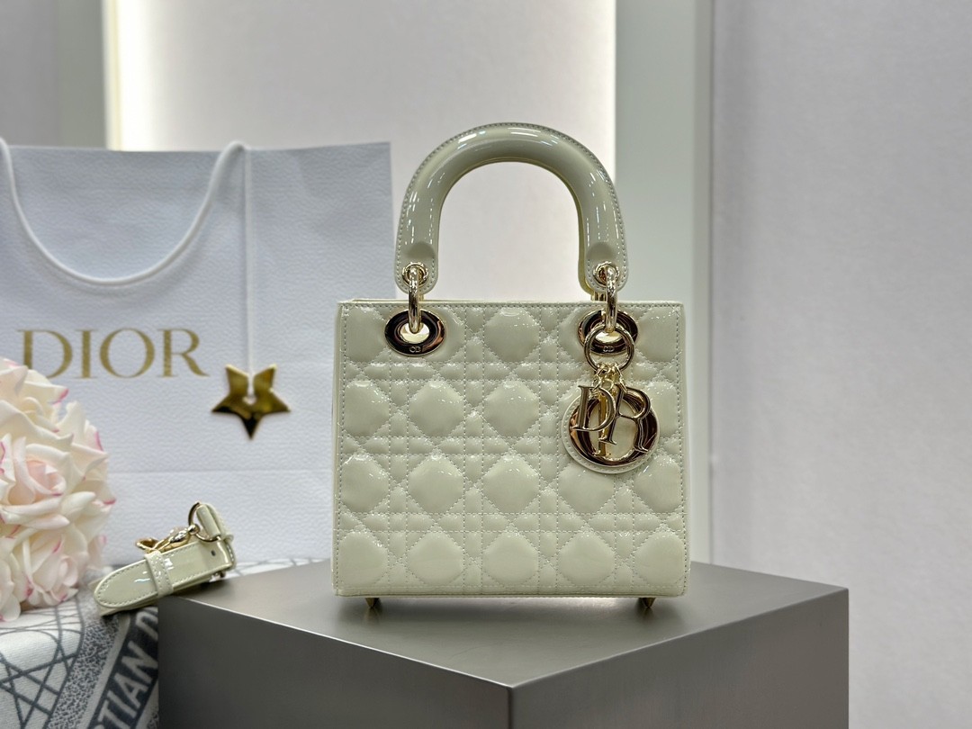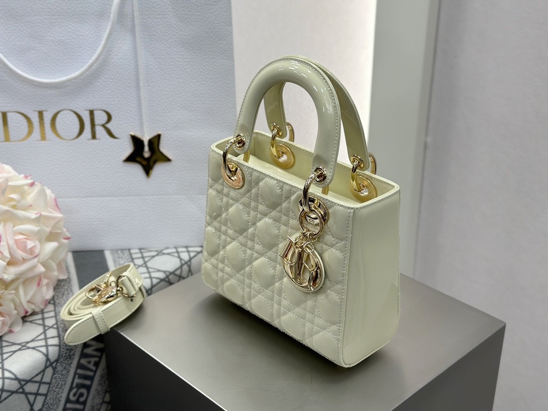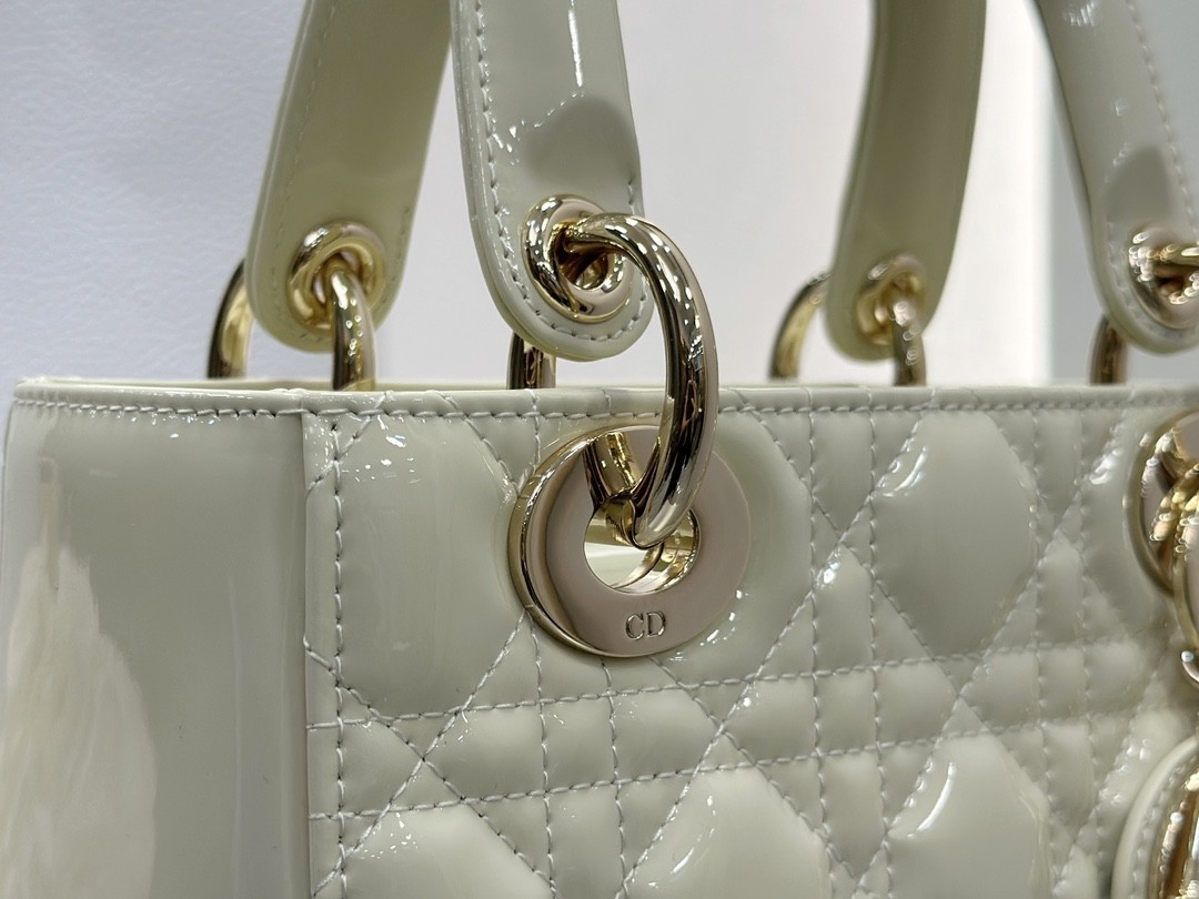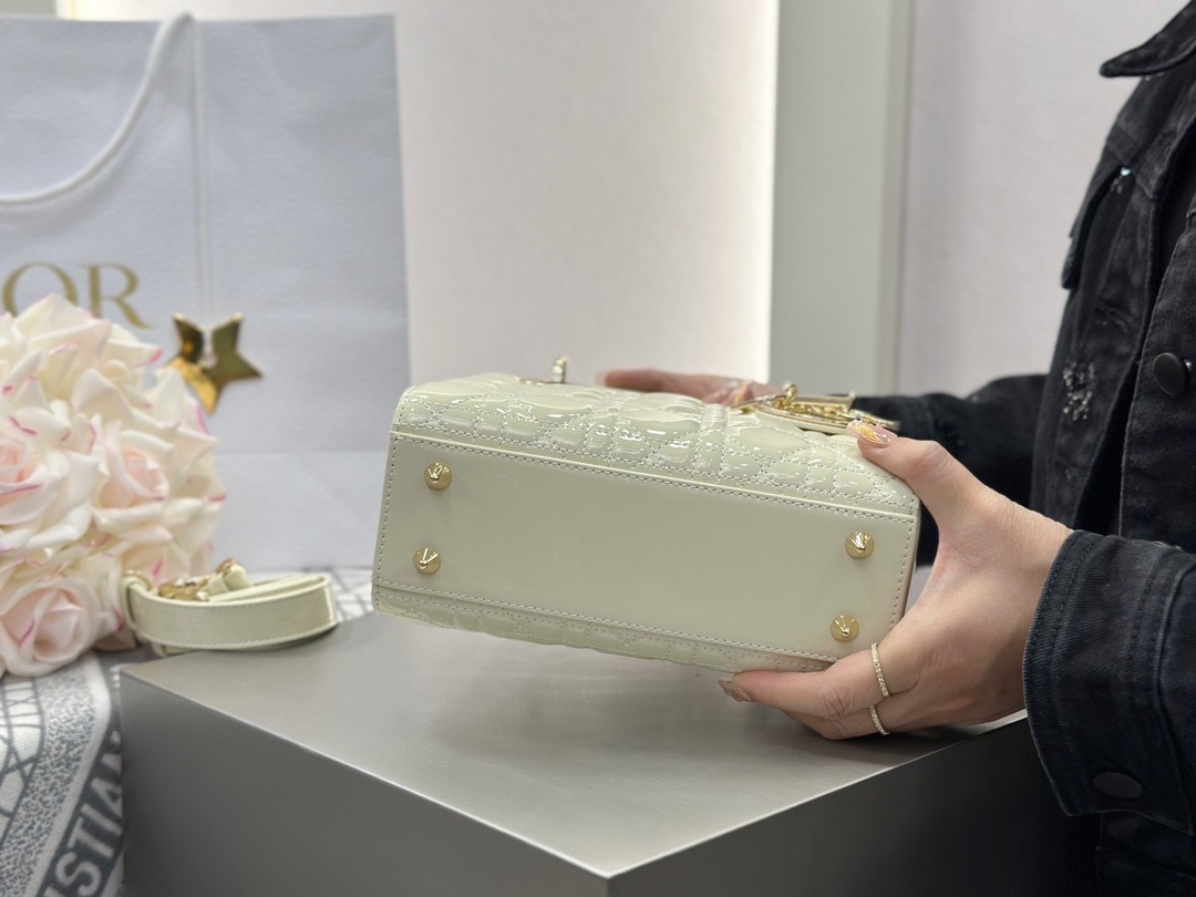 디올 스몰 레이디백 페이턴트 까나쥬 라떼