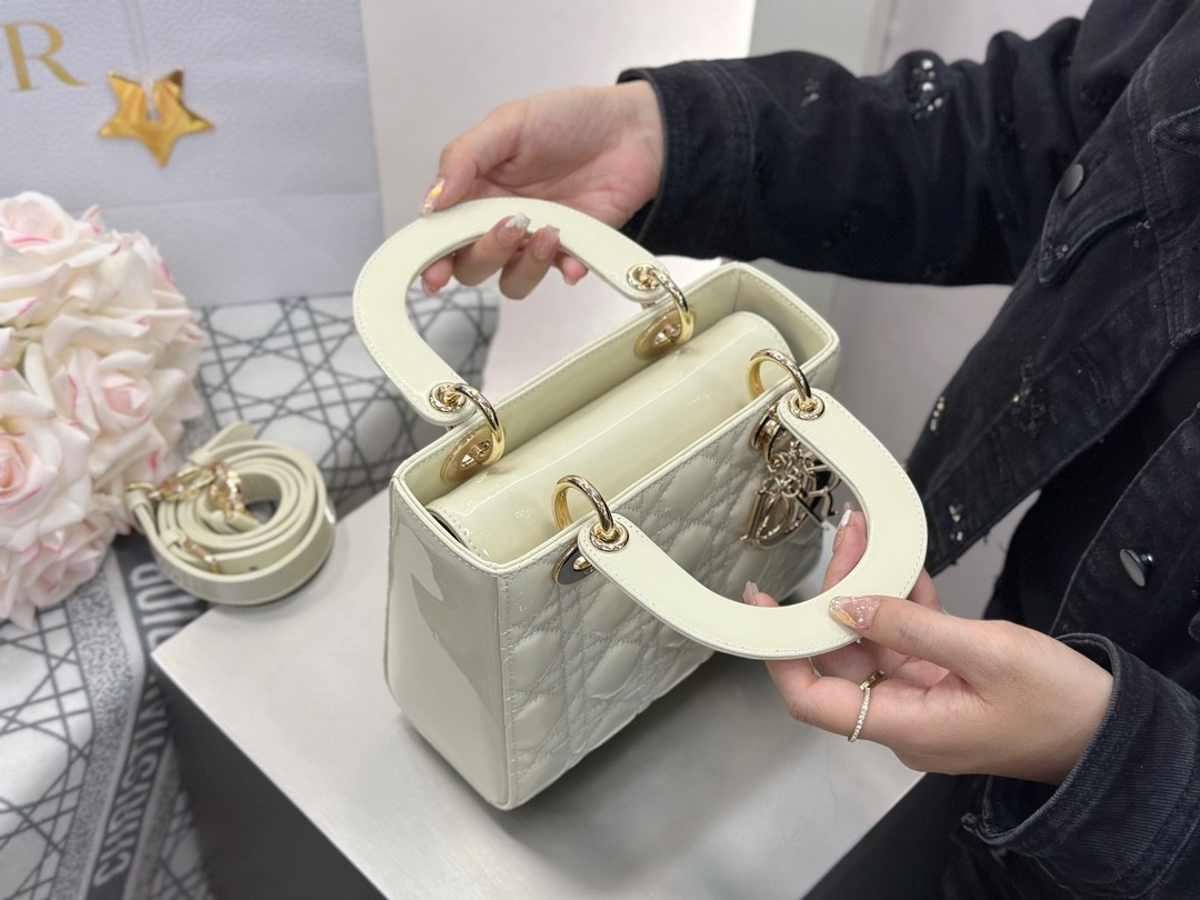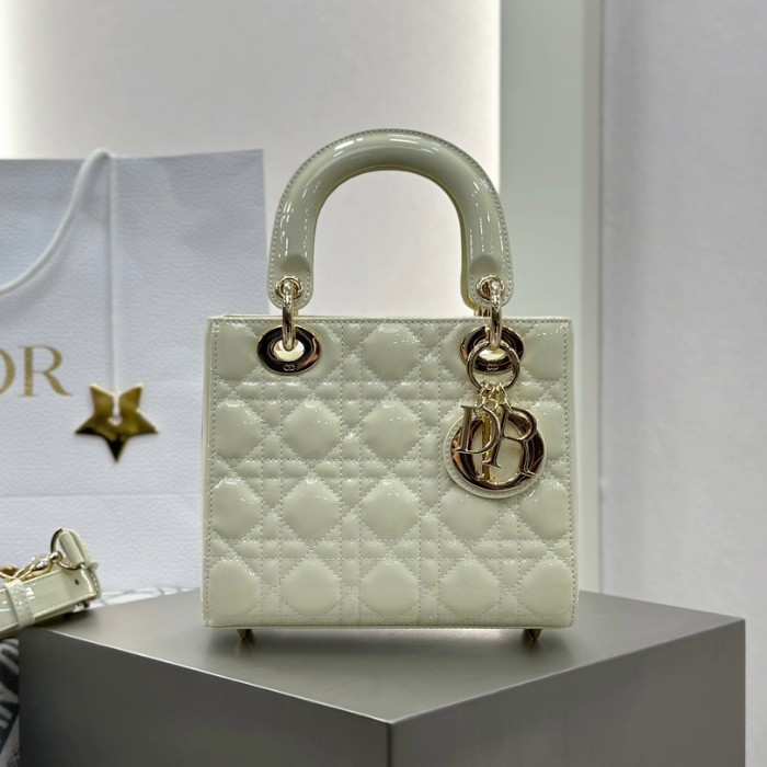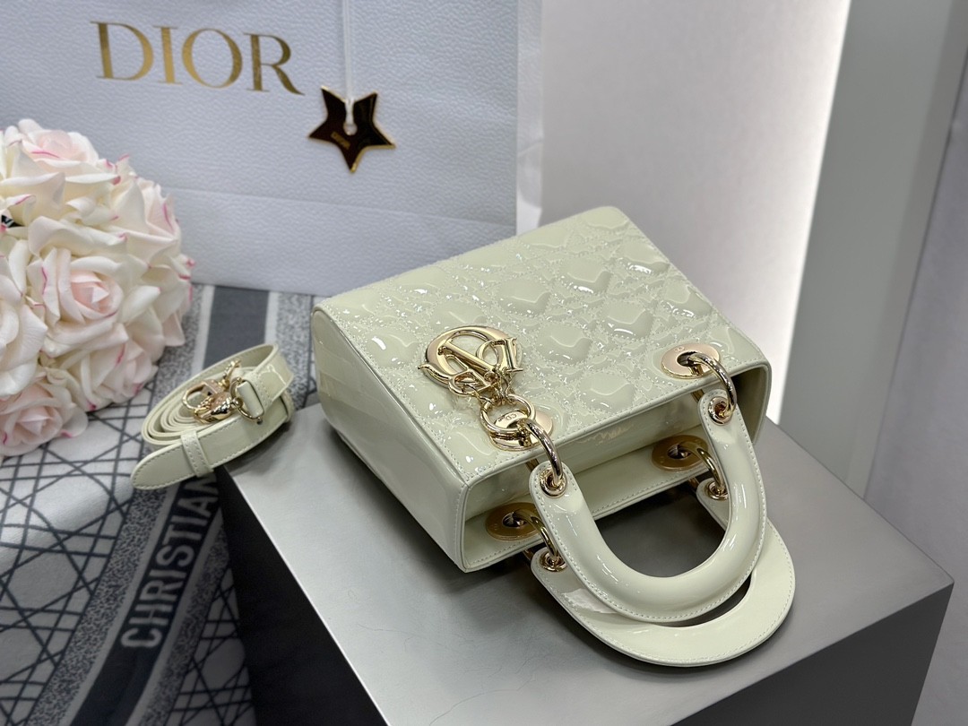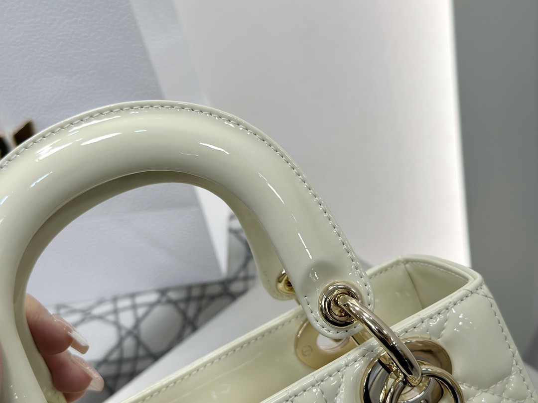 디올 스몰 레이디백 페이턴트 까나쥬 라떼