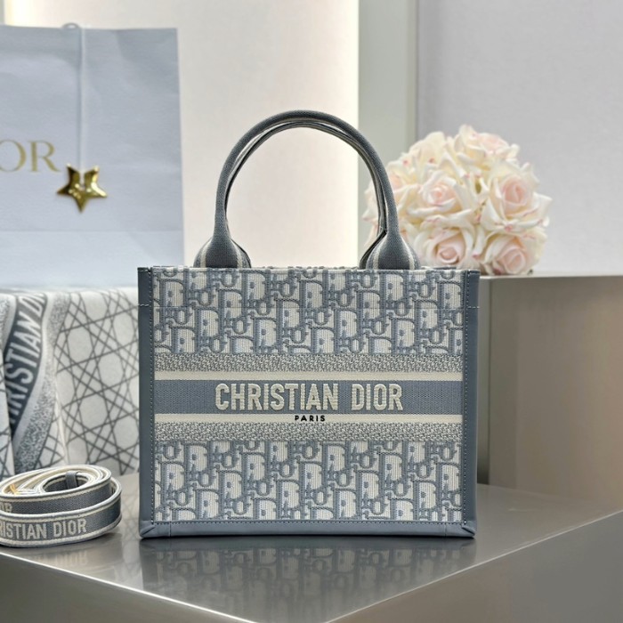 디올 스몰 북 토트백 오블리크 자카드 그레이
