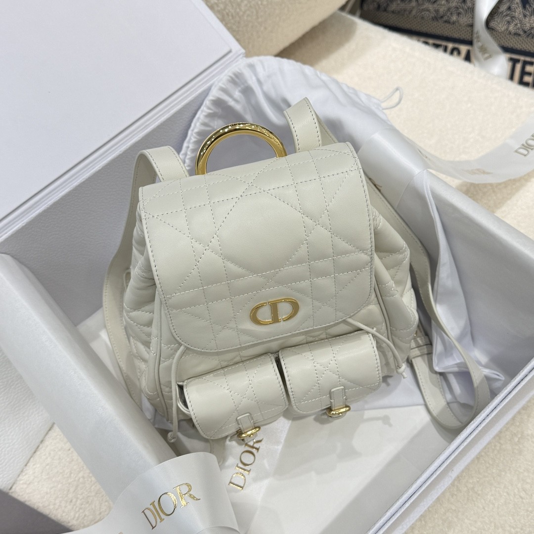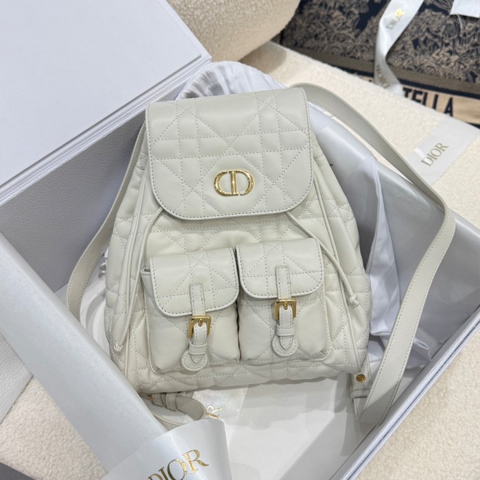 디올 카로 미디엄 백팩 파우더 화이트 매크로 까나쥬 양가죽