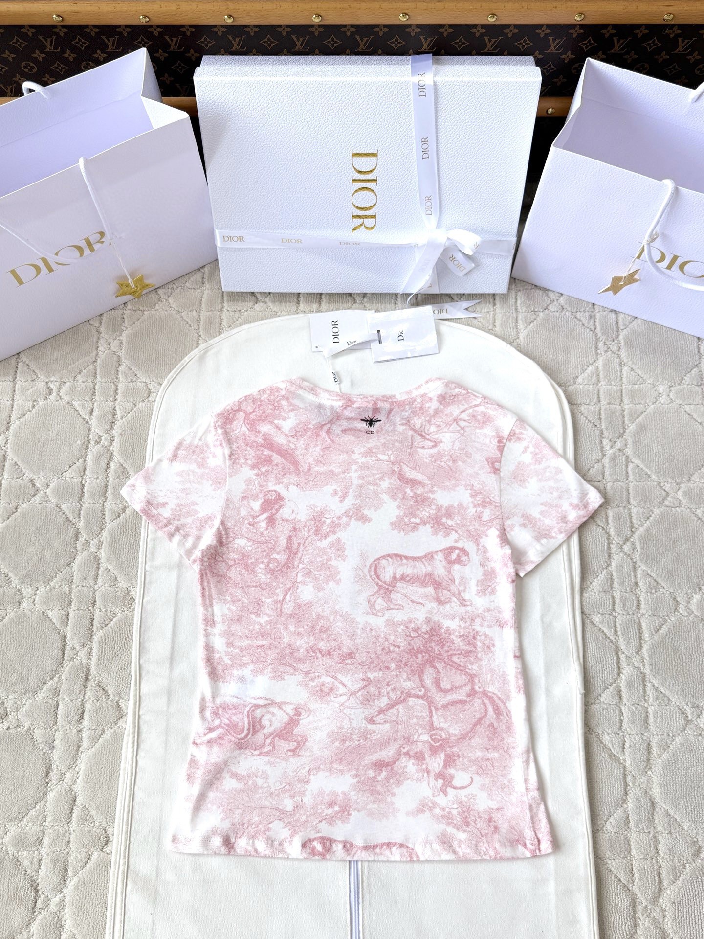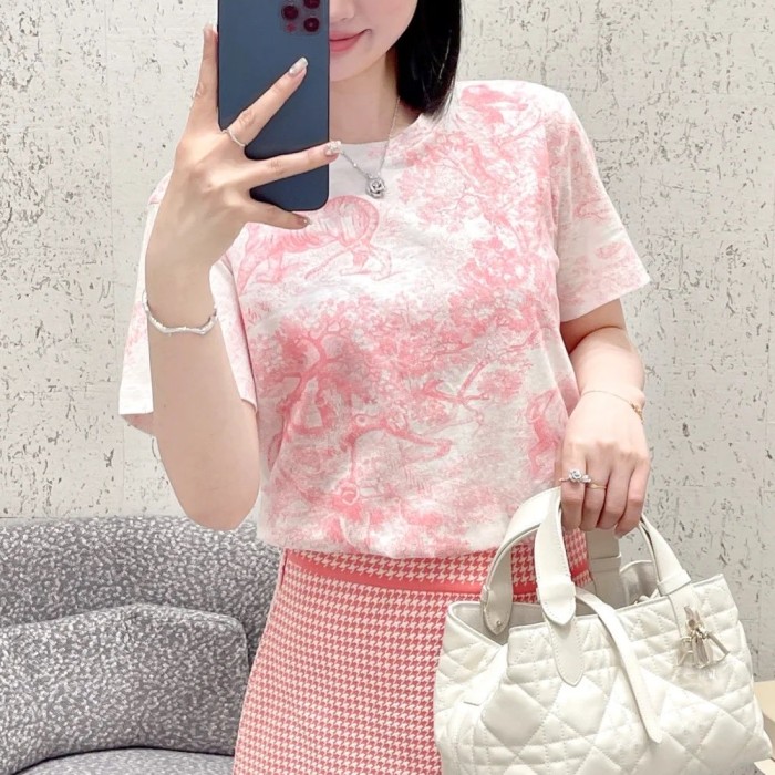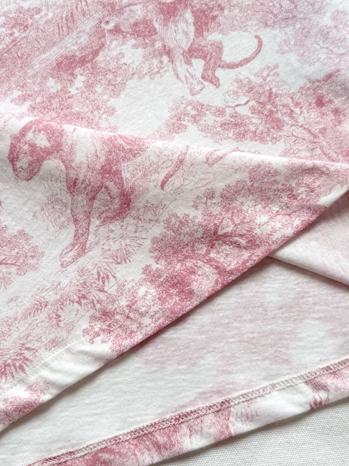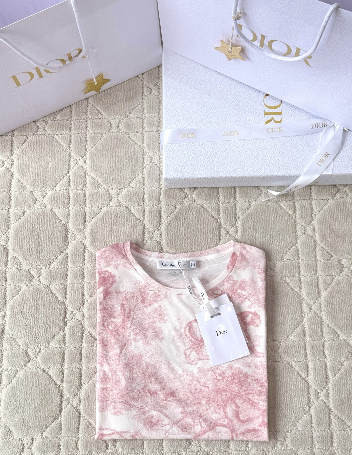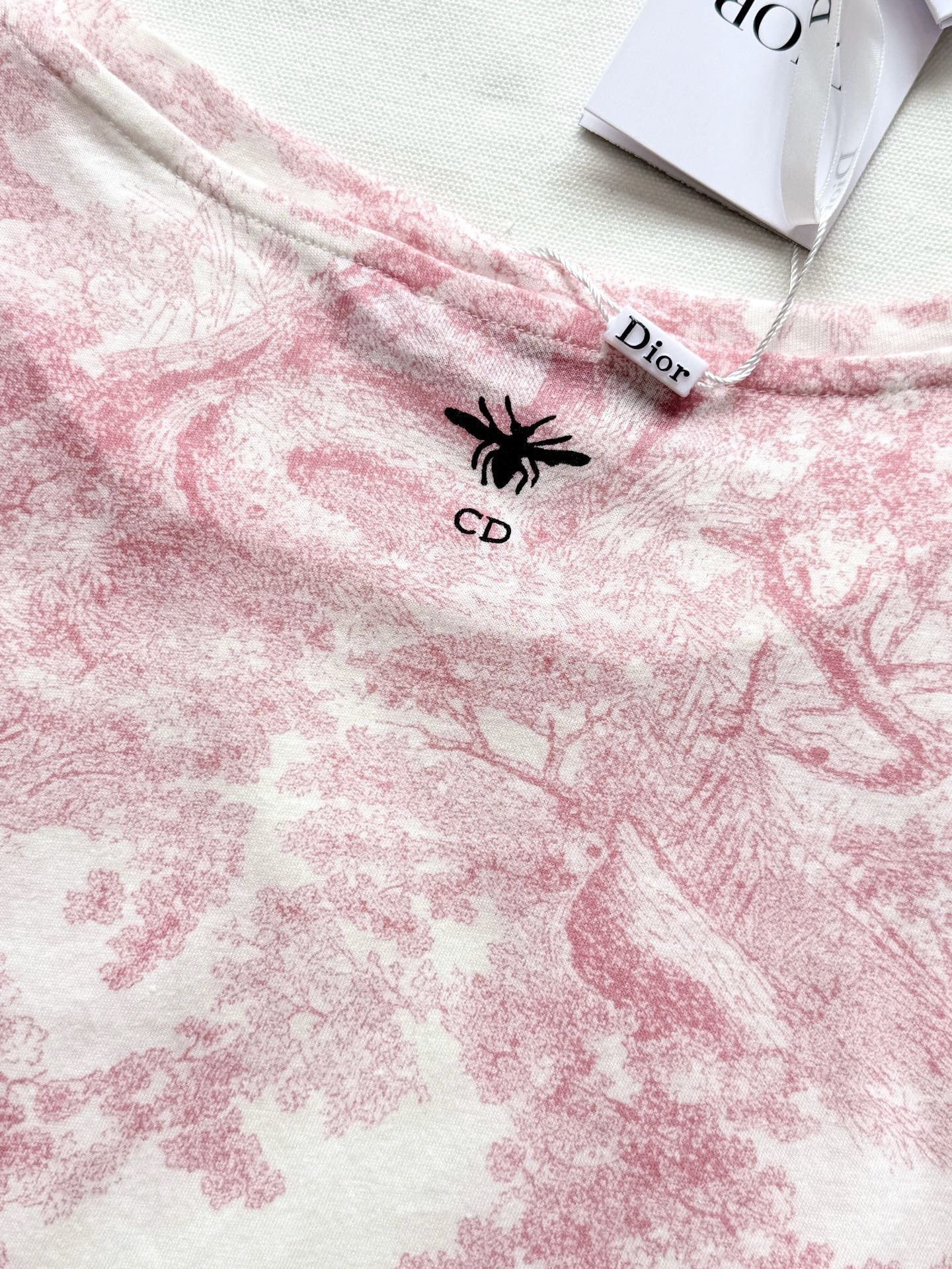 디올 티셔츠 화이트 코튼 린넨 저지 & 은방울꽃 그린 Toile de Jouy Sauvage 모티브