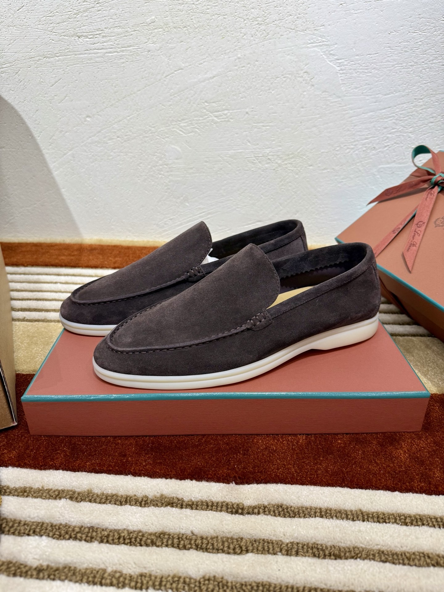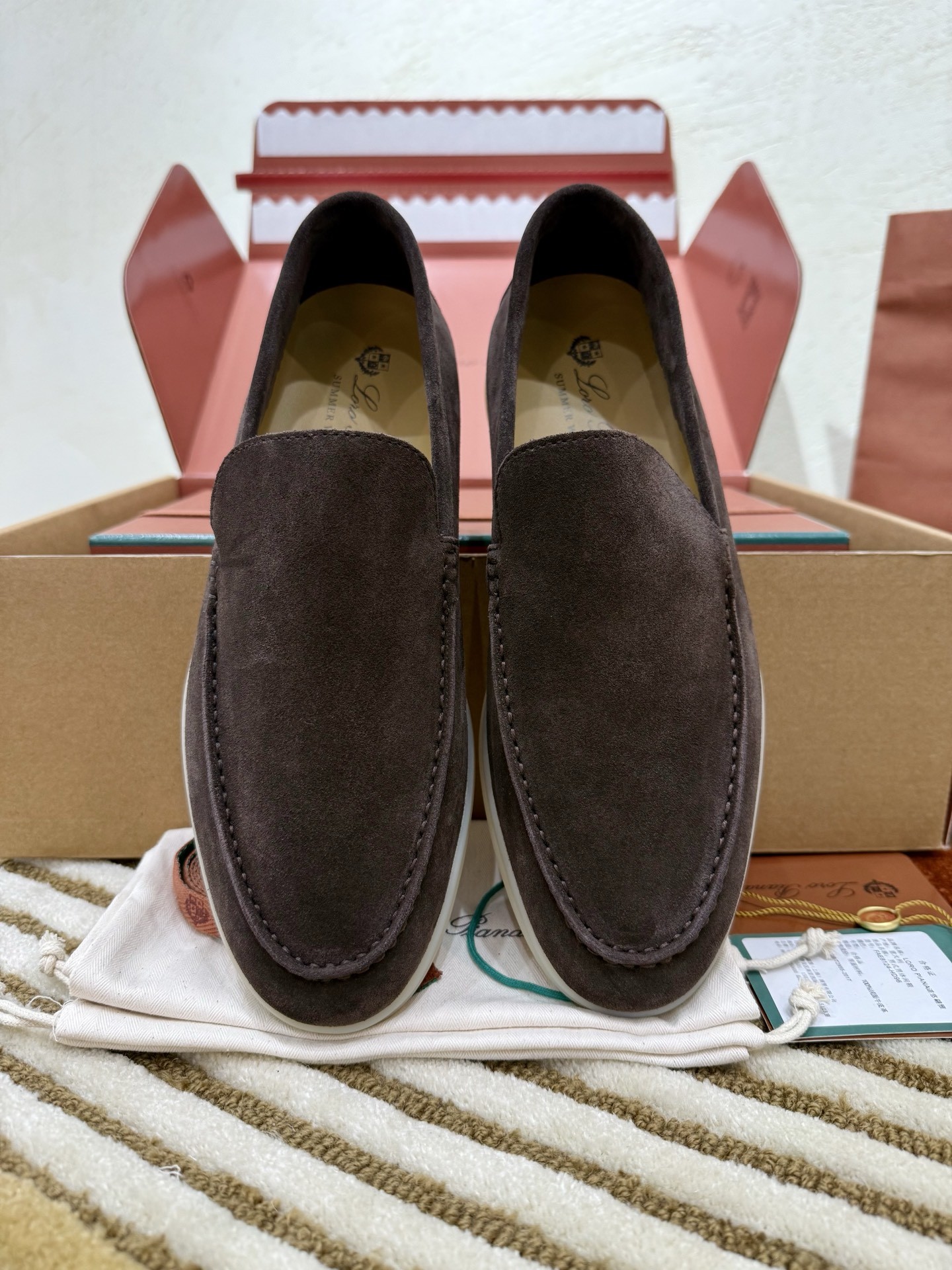 로로피아나 스웨이드 썸머 워크 로퍼 커피 브라운