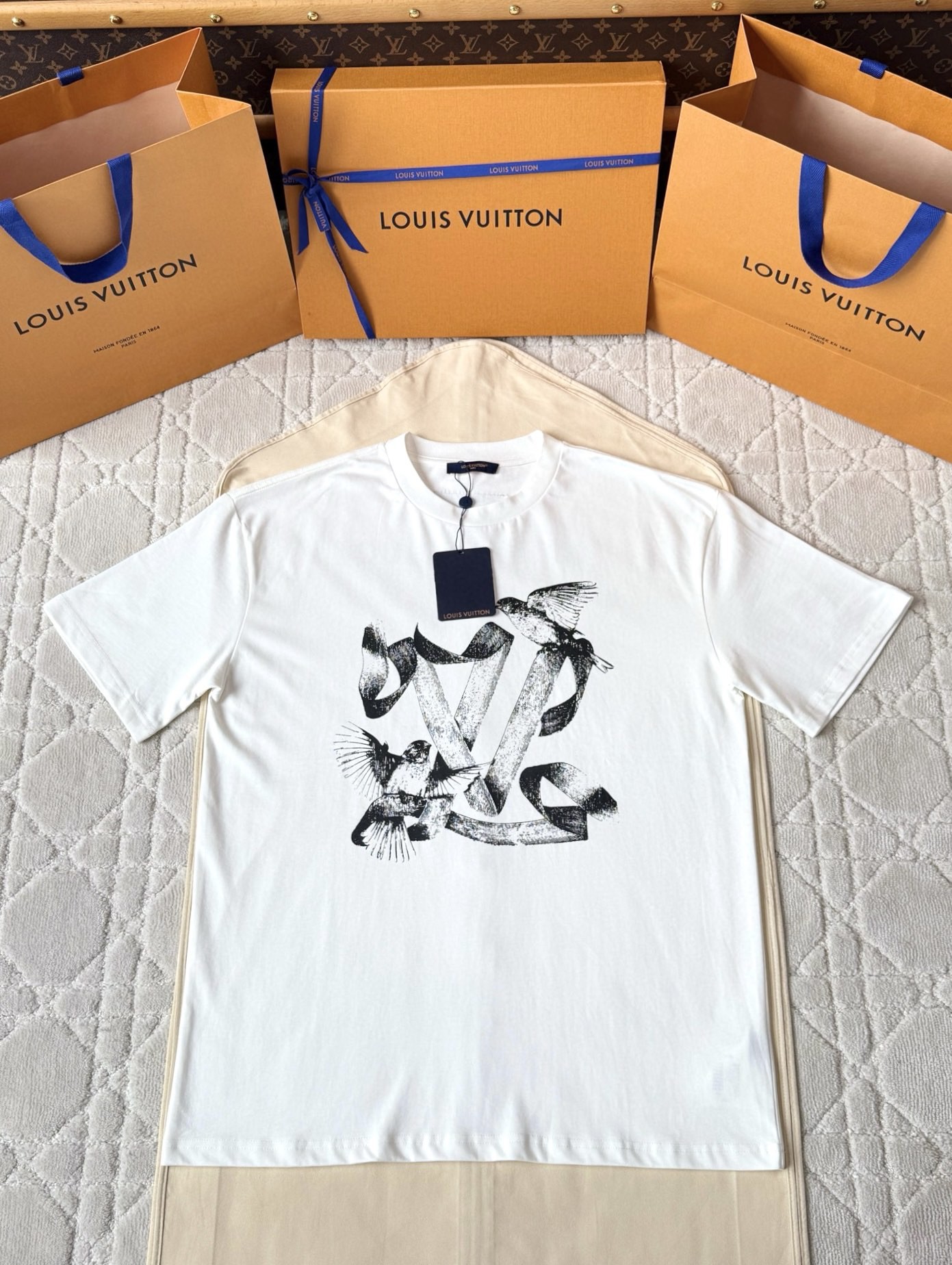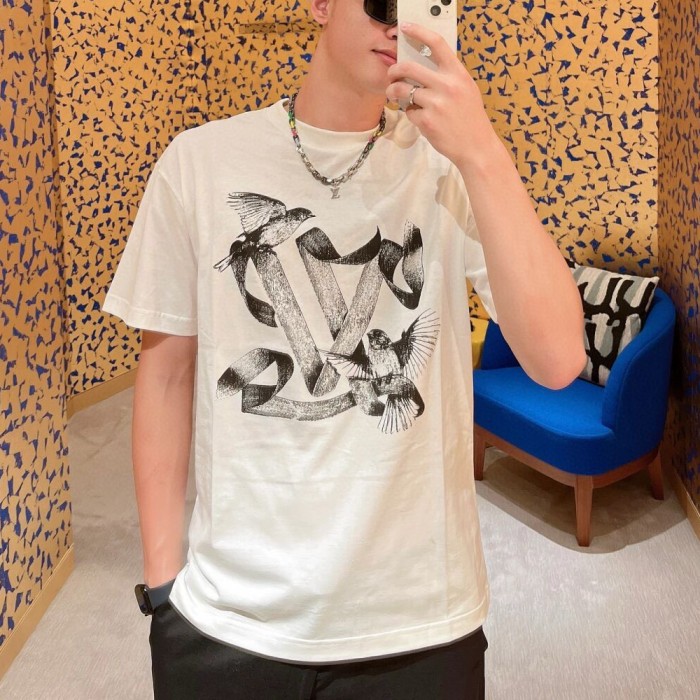 루이비통 버드 프린트 코튼 티셔츠 화이트