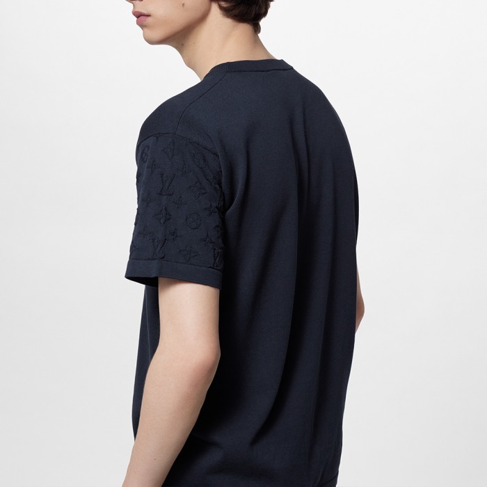 루이비통 숄더 모노그램 코튼 크루넥 반팔 티셔츠 네이비