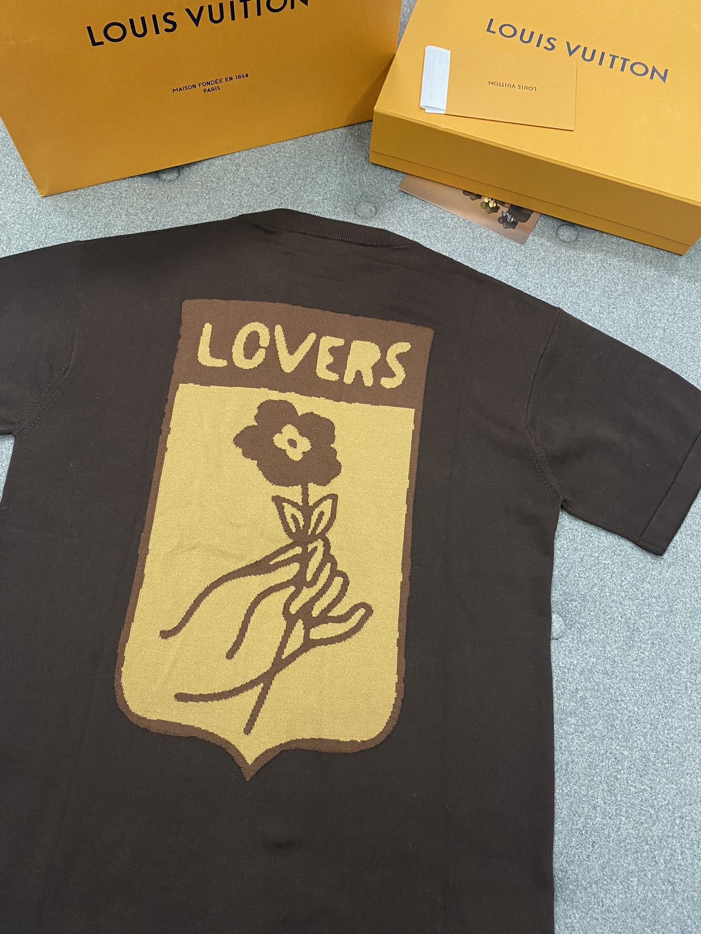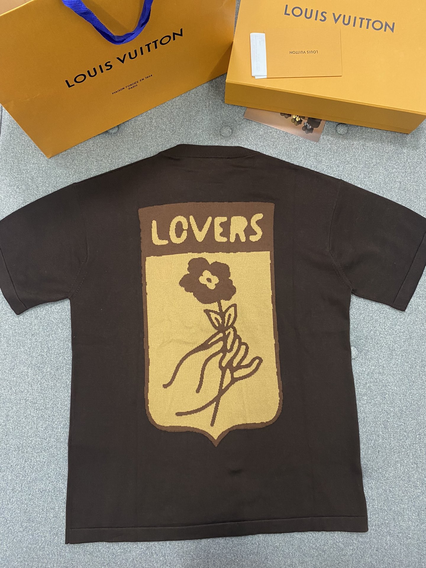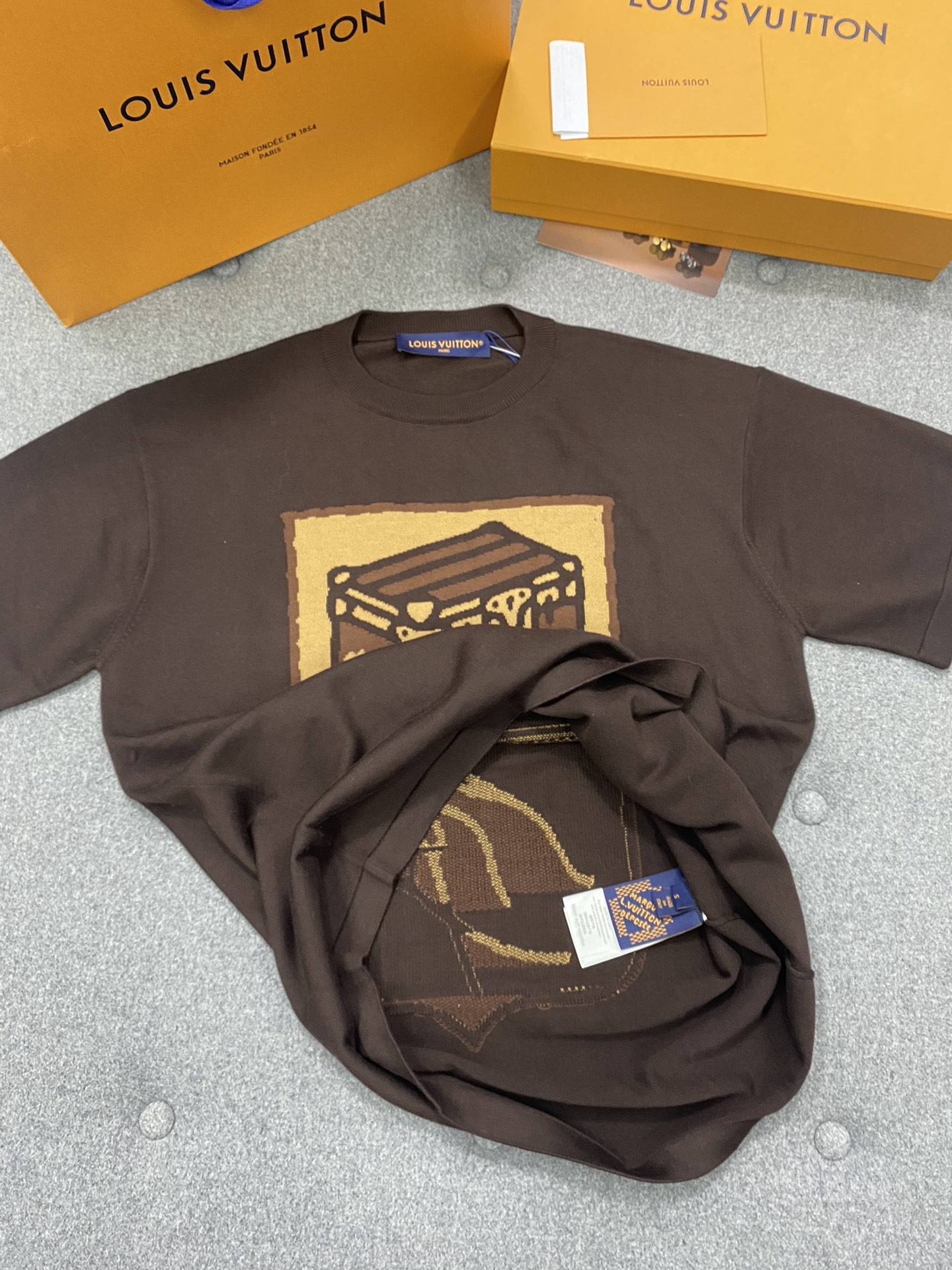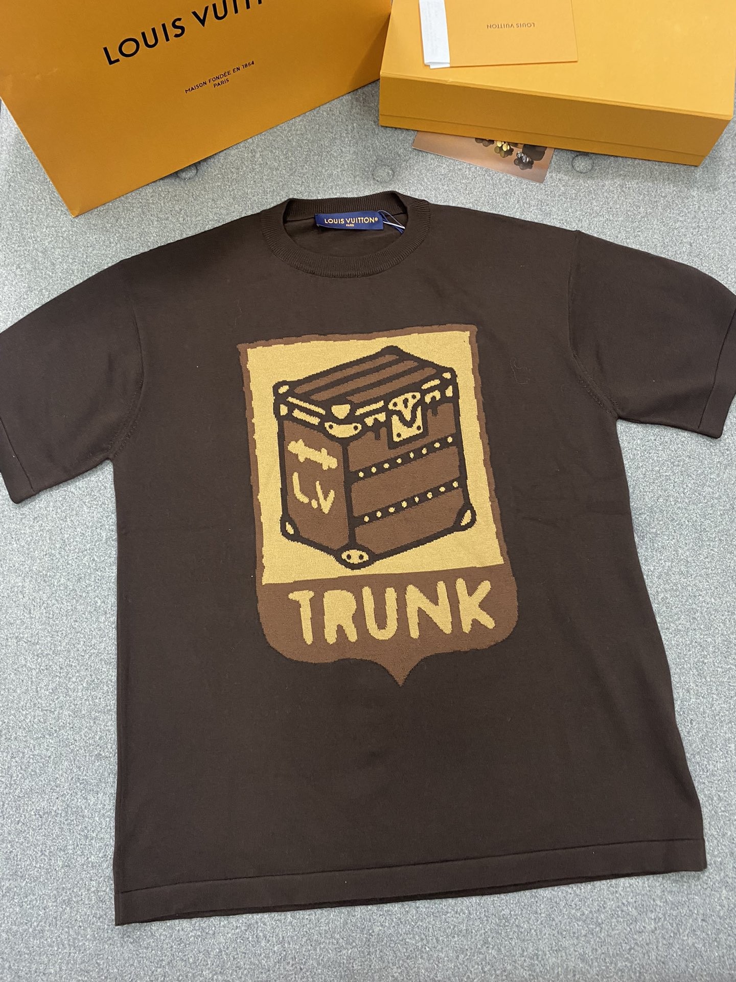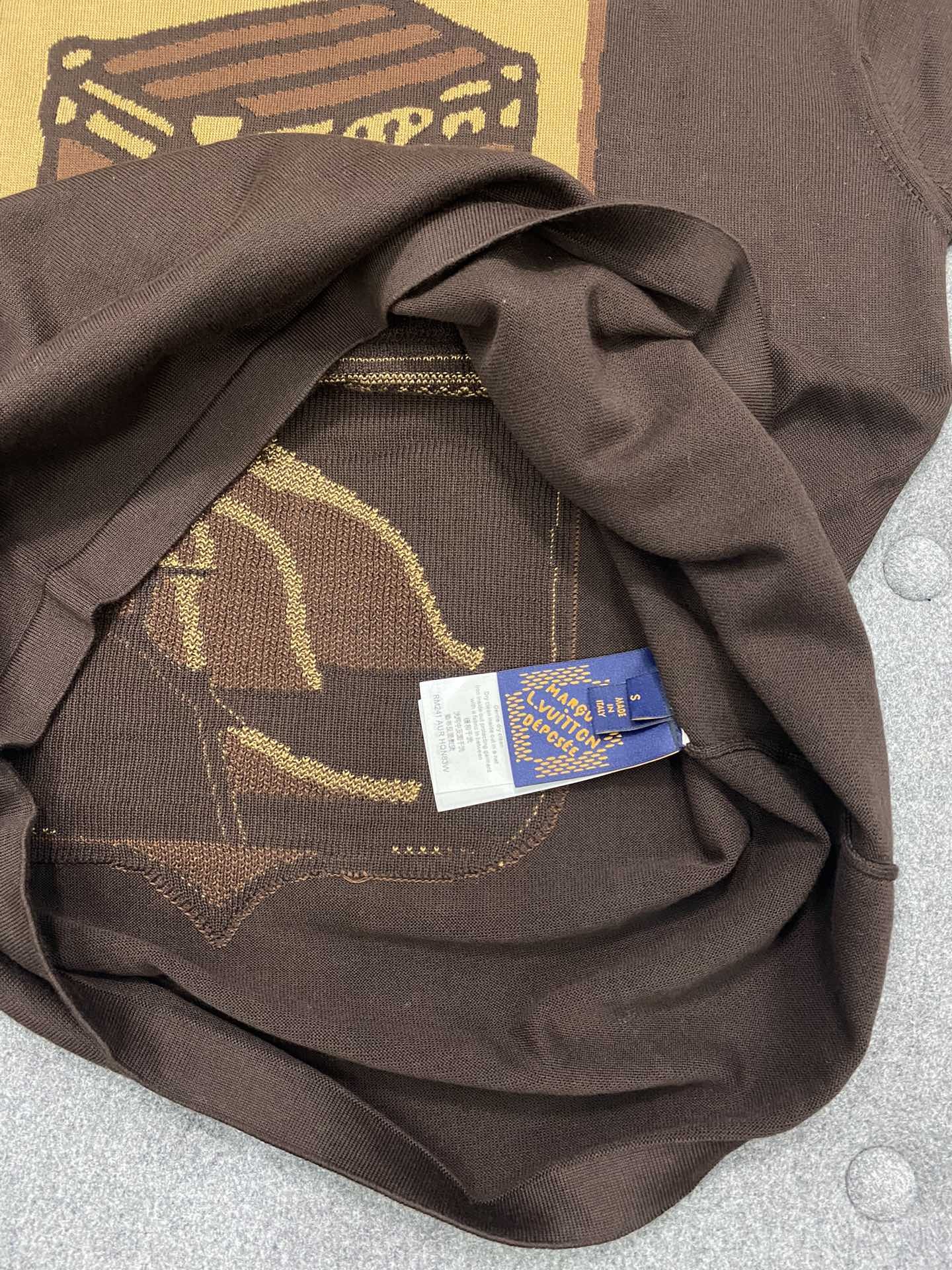 루이비통 퍼렐 인타르시아 트렁크 니트 반팔티 브라운