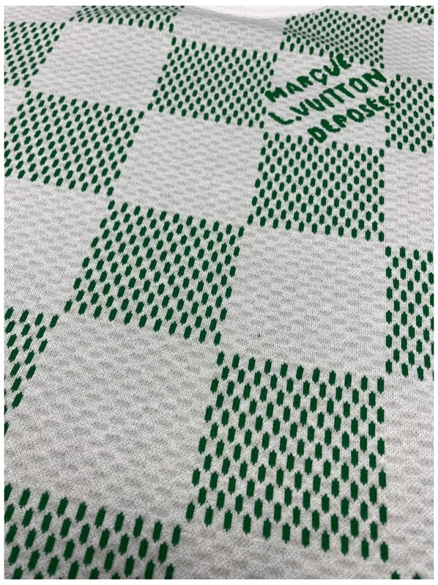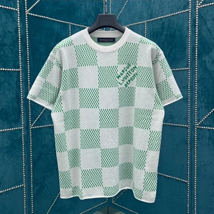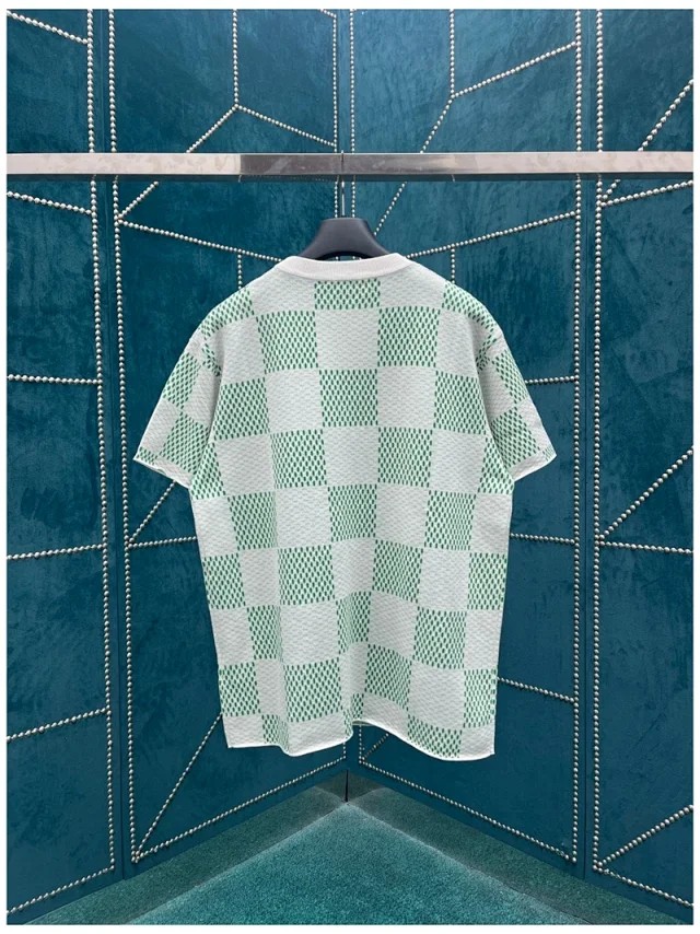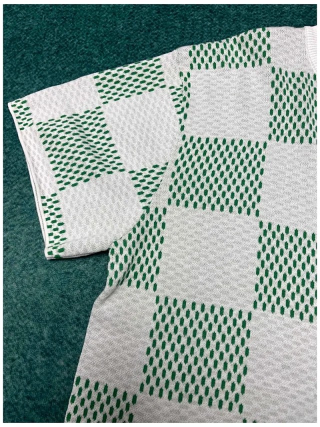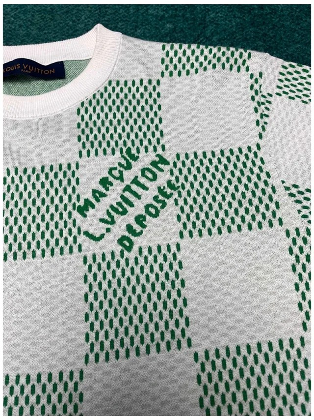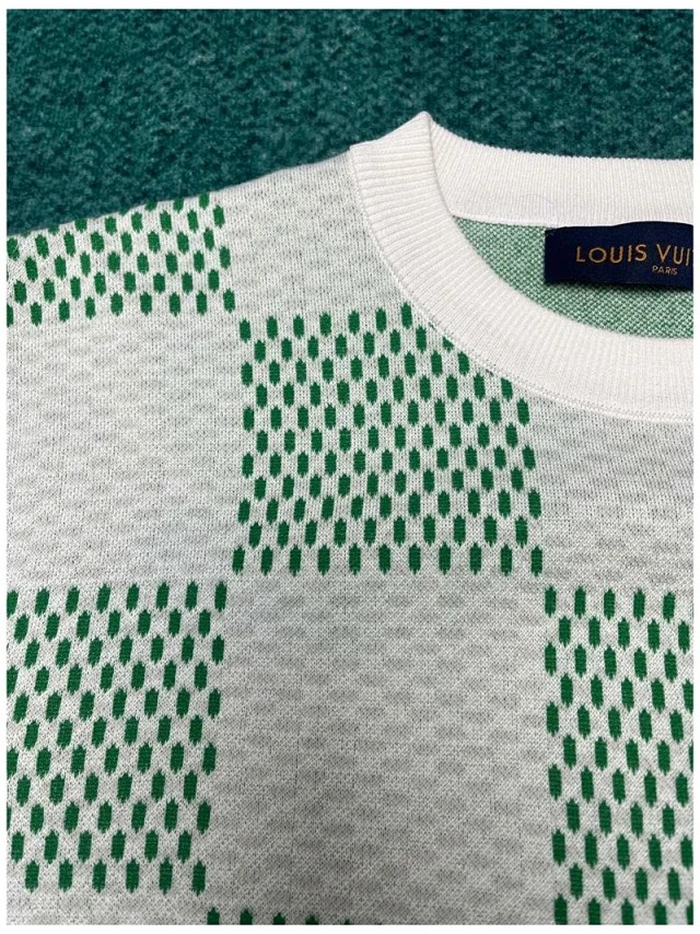 루이비통 화이트 그린 다미에 슬리브 크루넥 니트 반팔