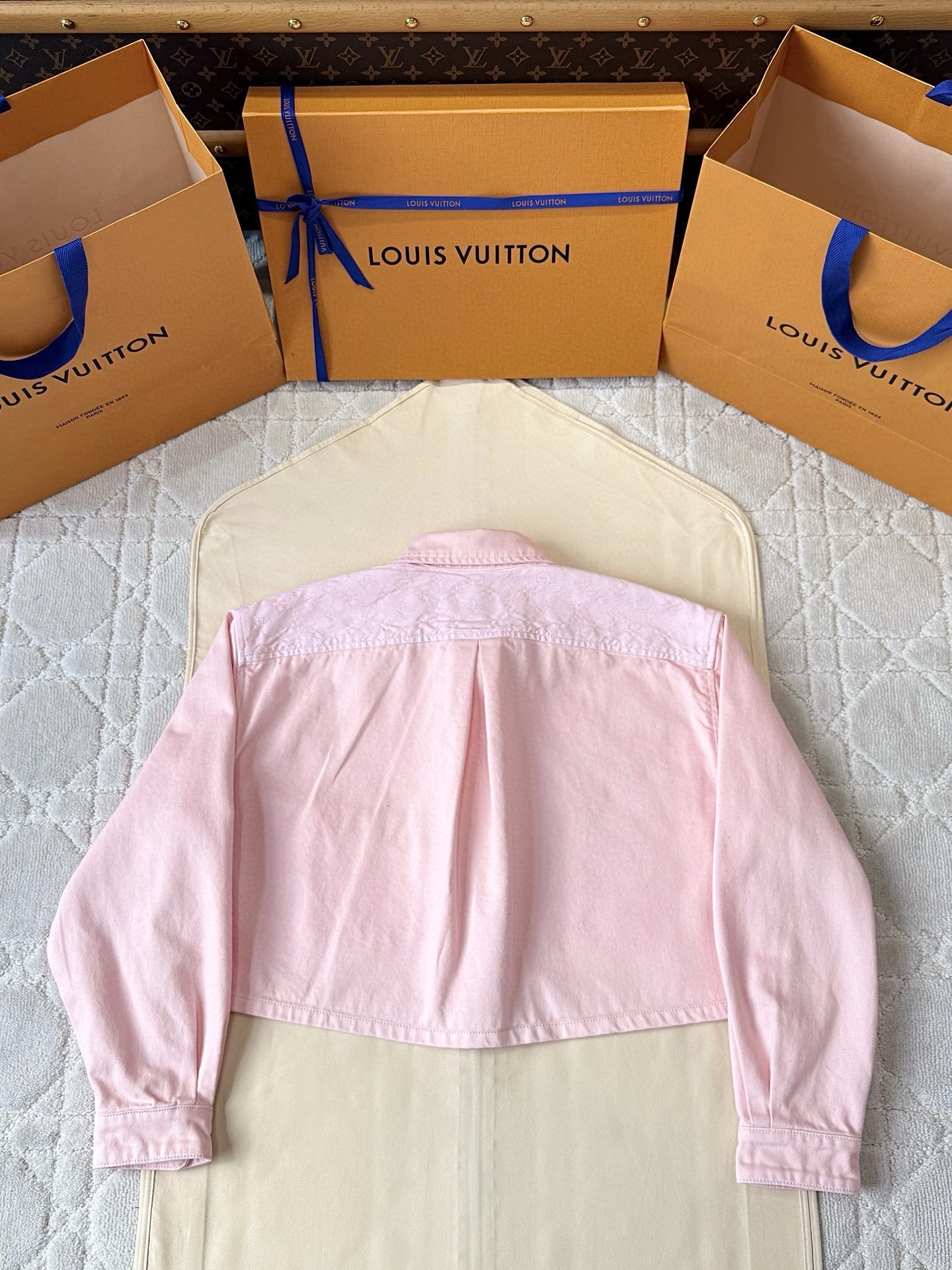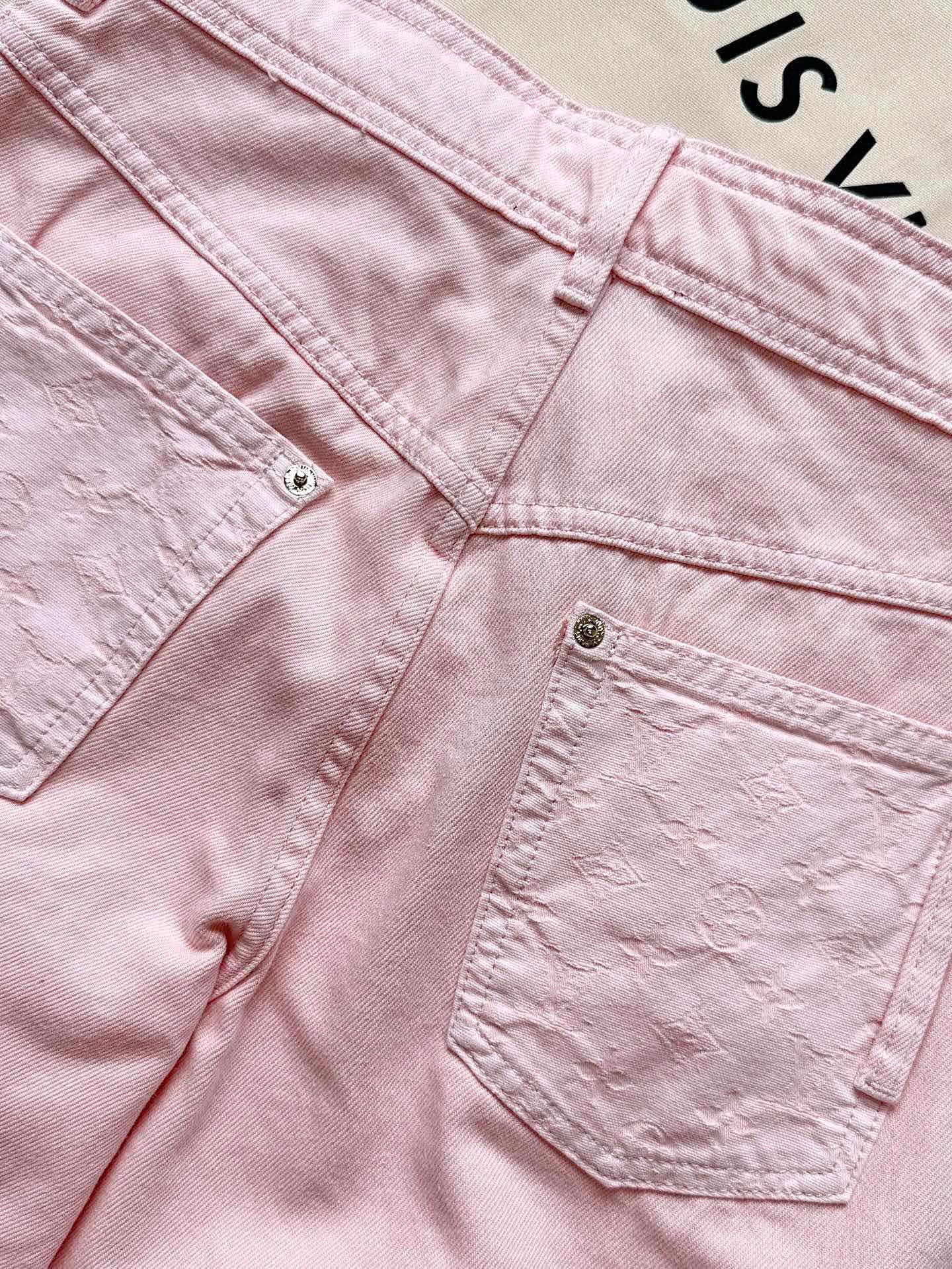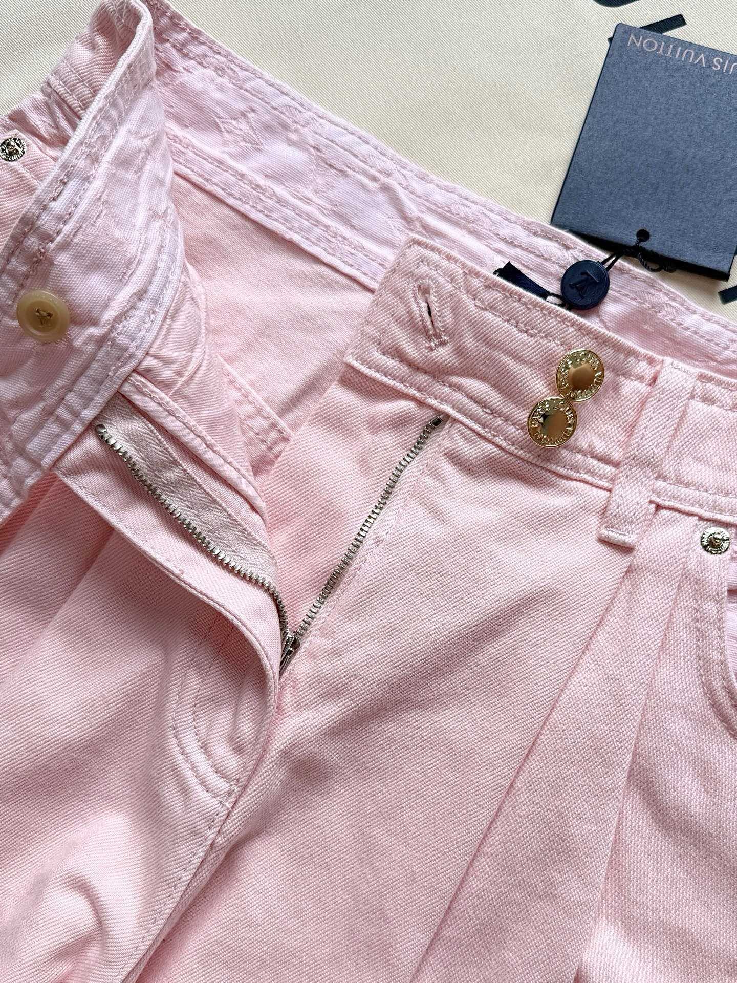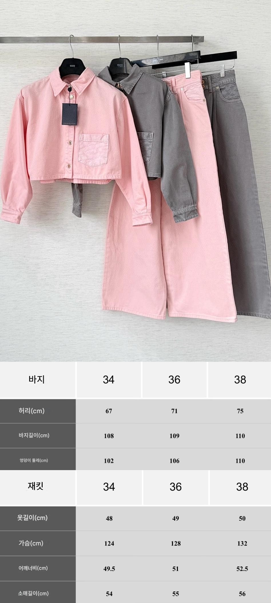 루이비통 25SS 워시드 데님 숏 자켓 셋업 핑크