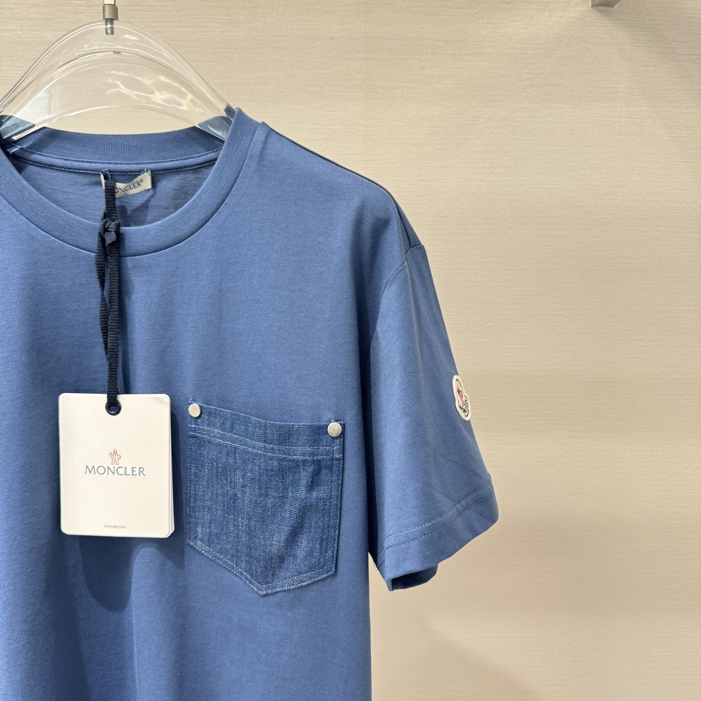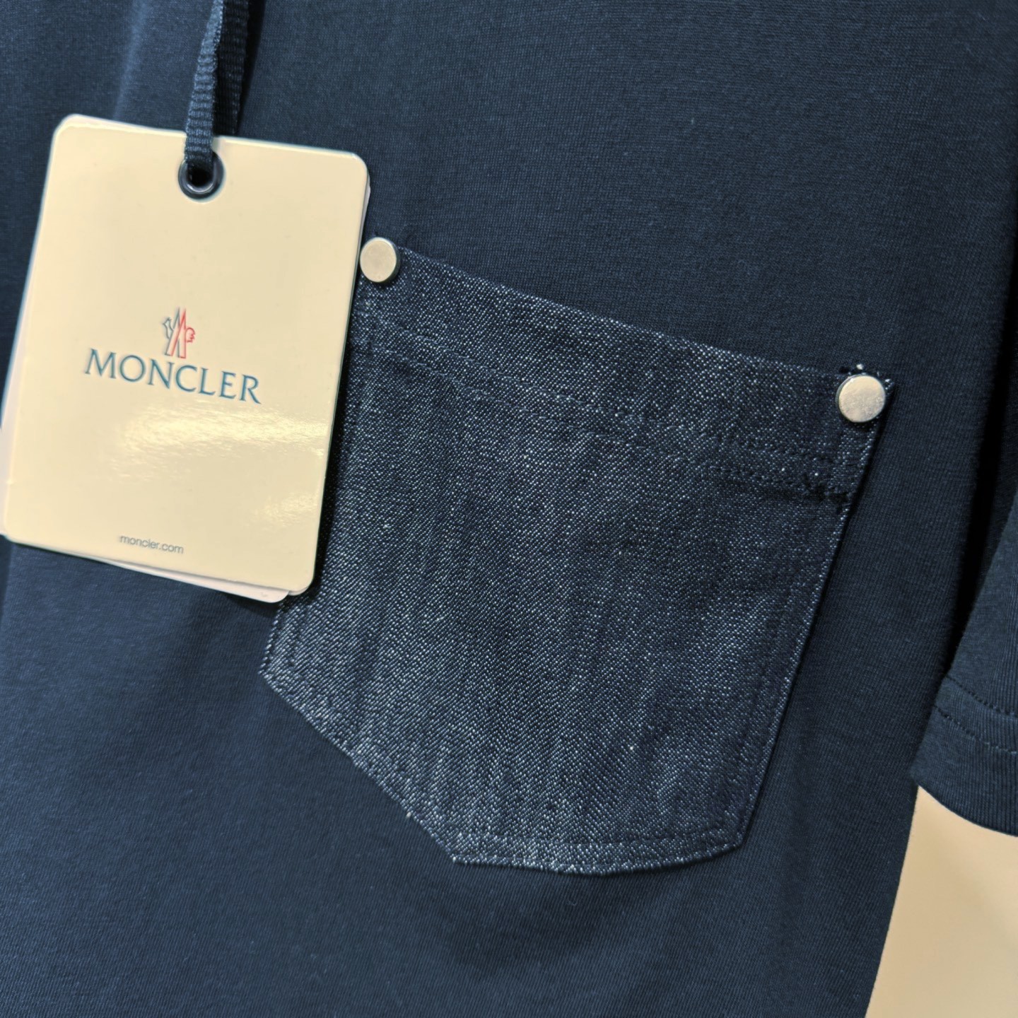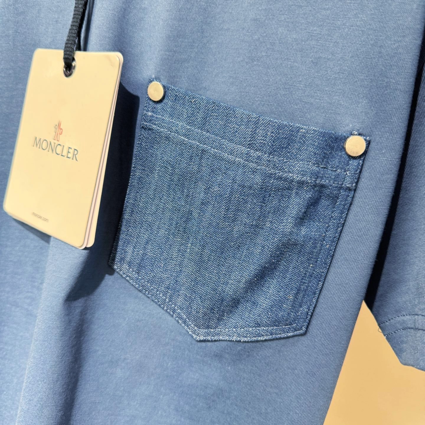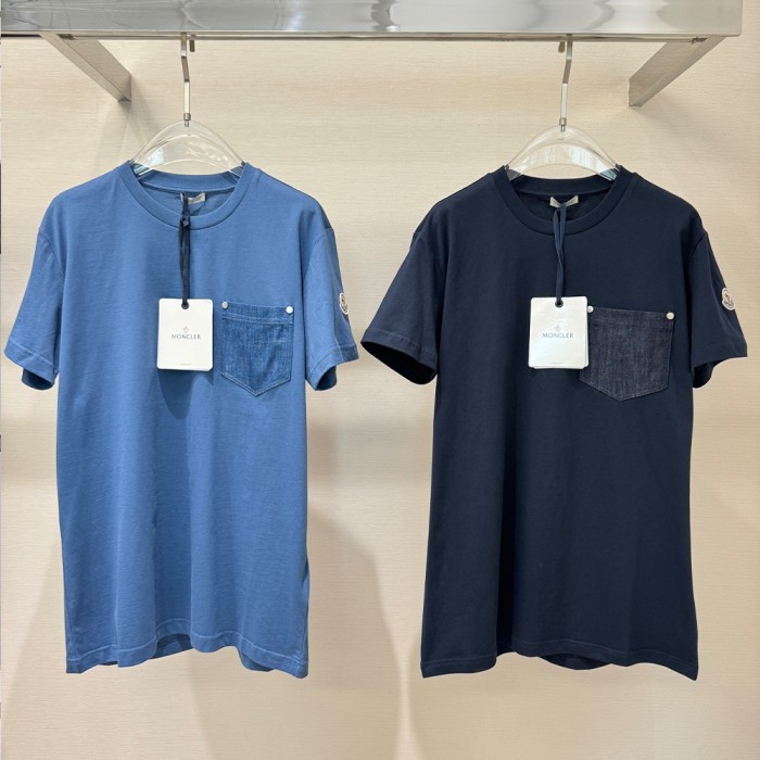 몽클레어 코튼 앤 데님 티셔츠 포켓 코발트 블루