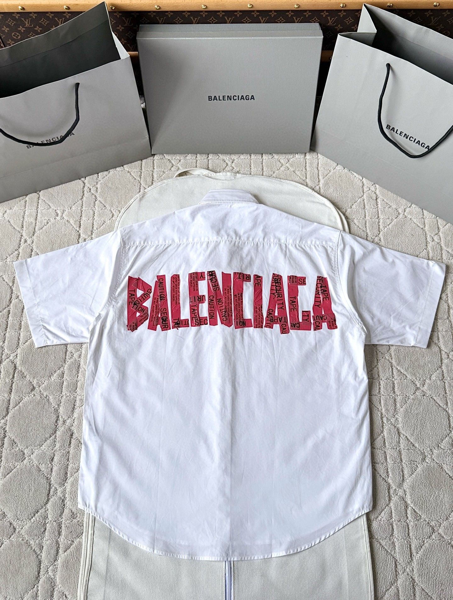 발렌시아가 레드 테이프 타입 라지 핏 숏슬리브 셔츠 화이트