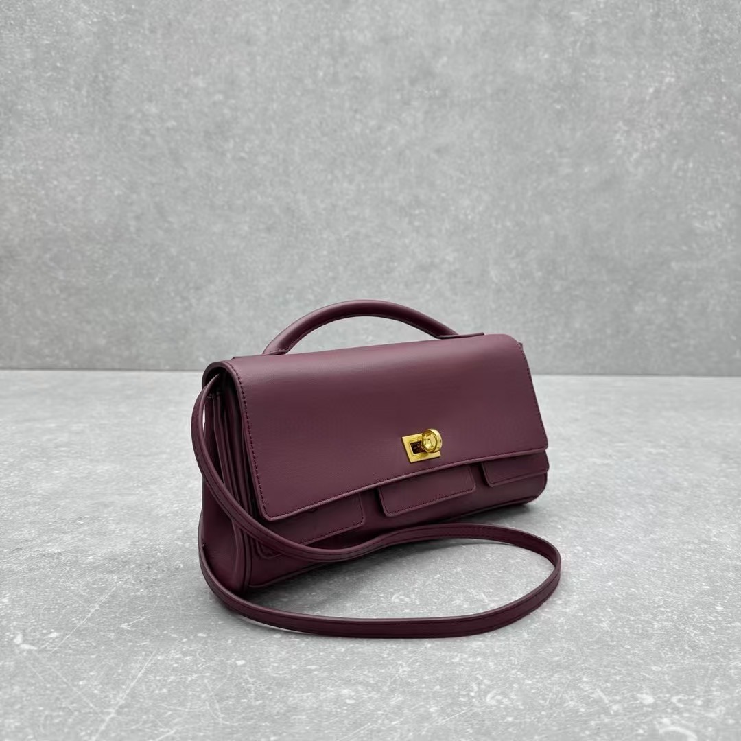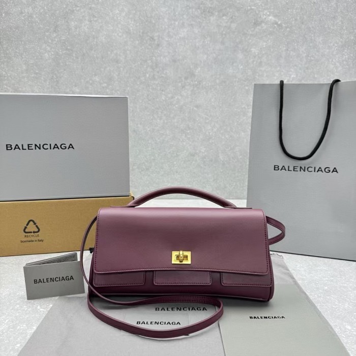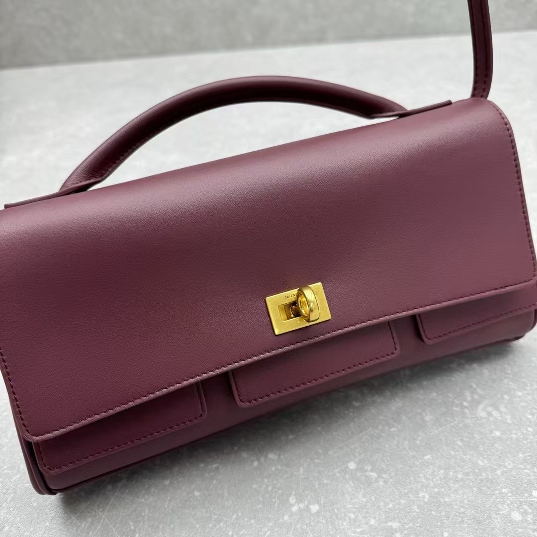 발렌시아가 벨 에어 스몰 클러치 온 스트랩 버건디