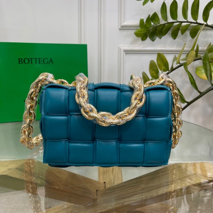 보테가베네타 더 체인 카세트 인트레치아토 가죽 백 네이비