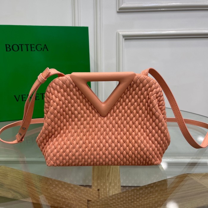 보테가베네타 스몰포인트 퀼팅 탑 핸들백 피치