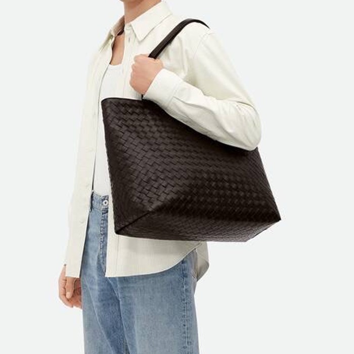 보테가베네타 인트레치아토 지퍼 라지 토트백 브라운 786666