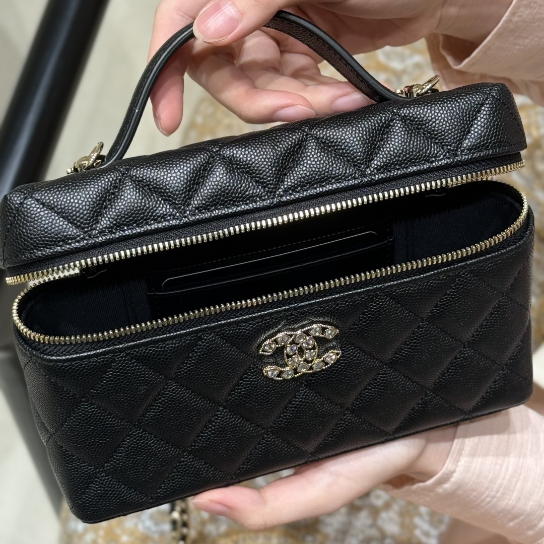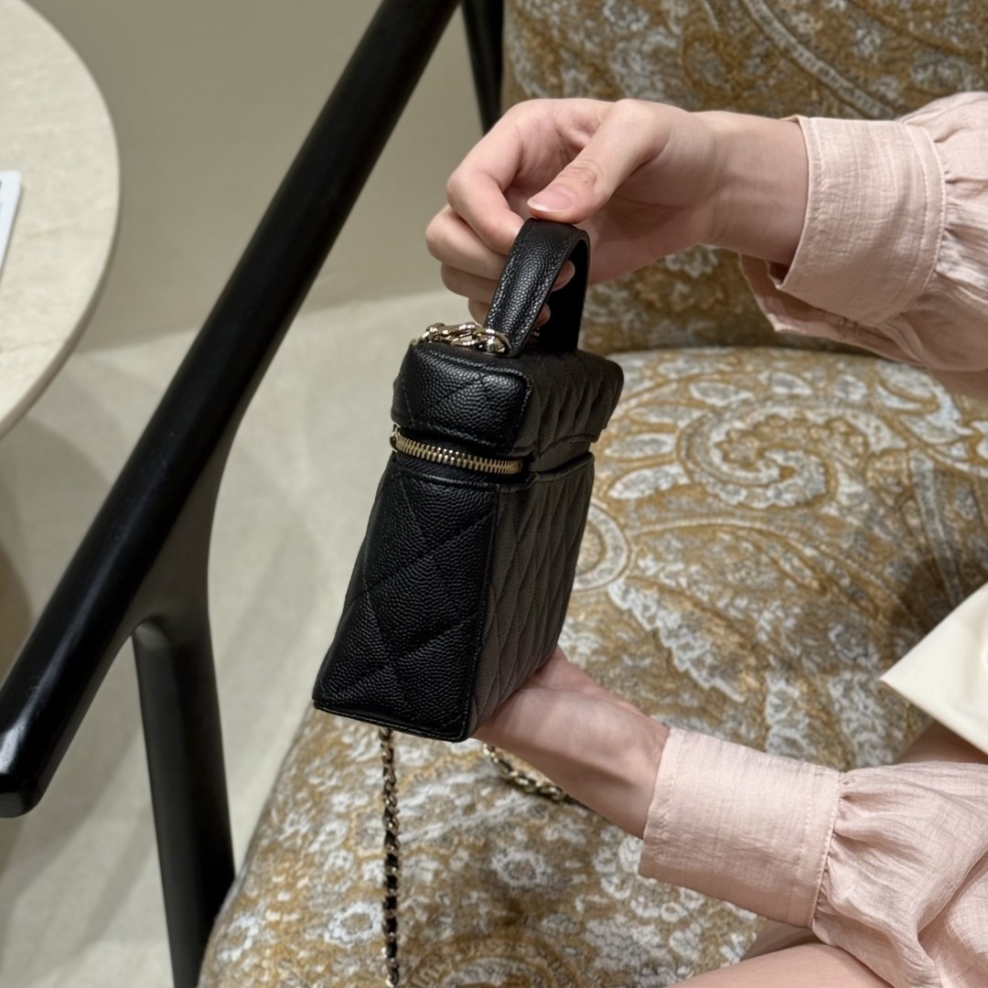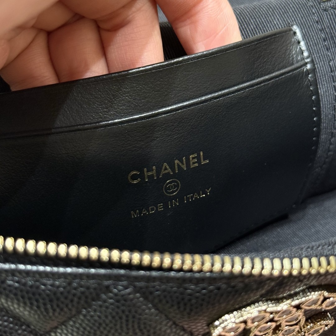 샤넬 롱 체인 코스메틱 케이스 램스킨 & 실버 메탈 블랙