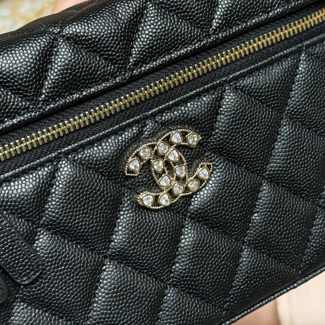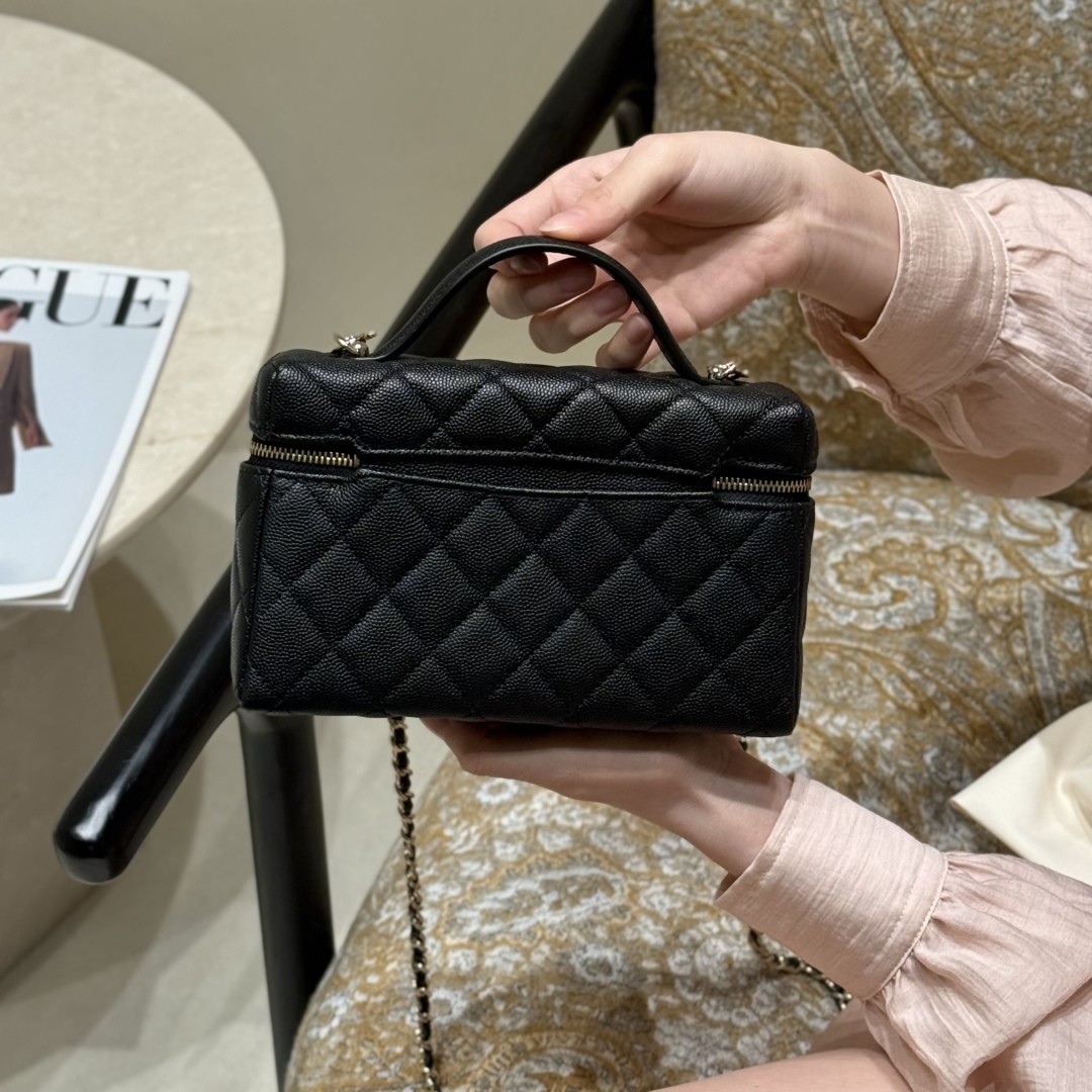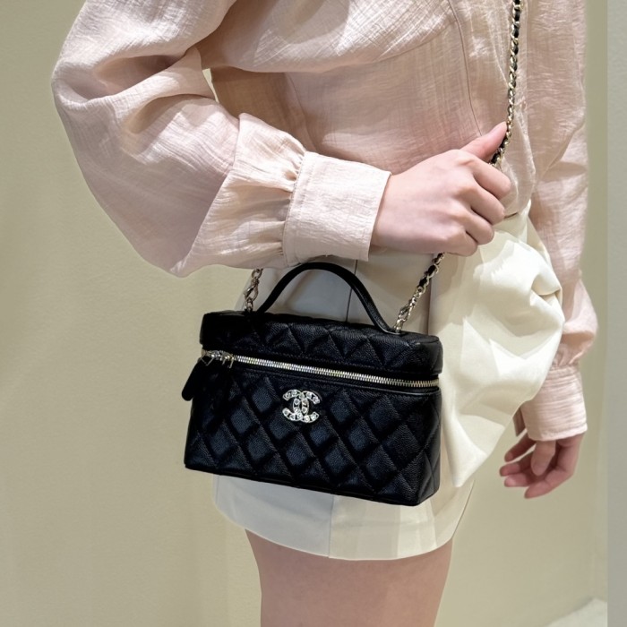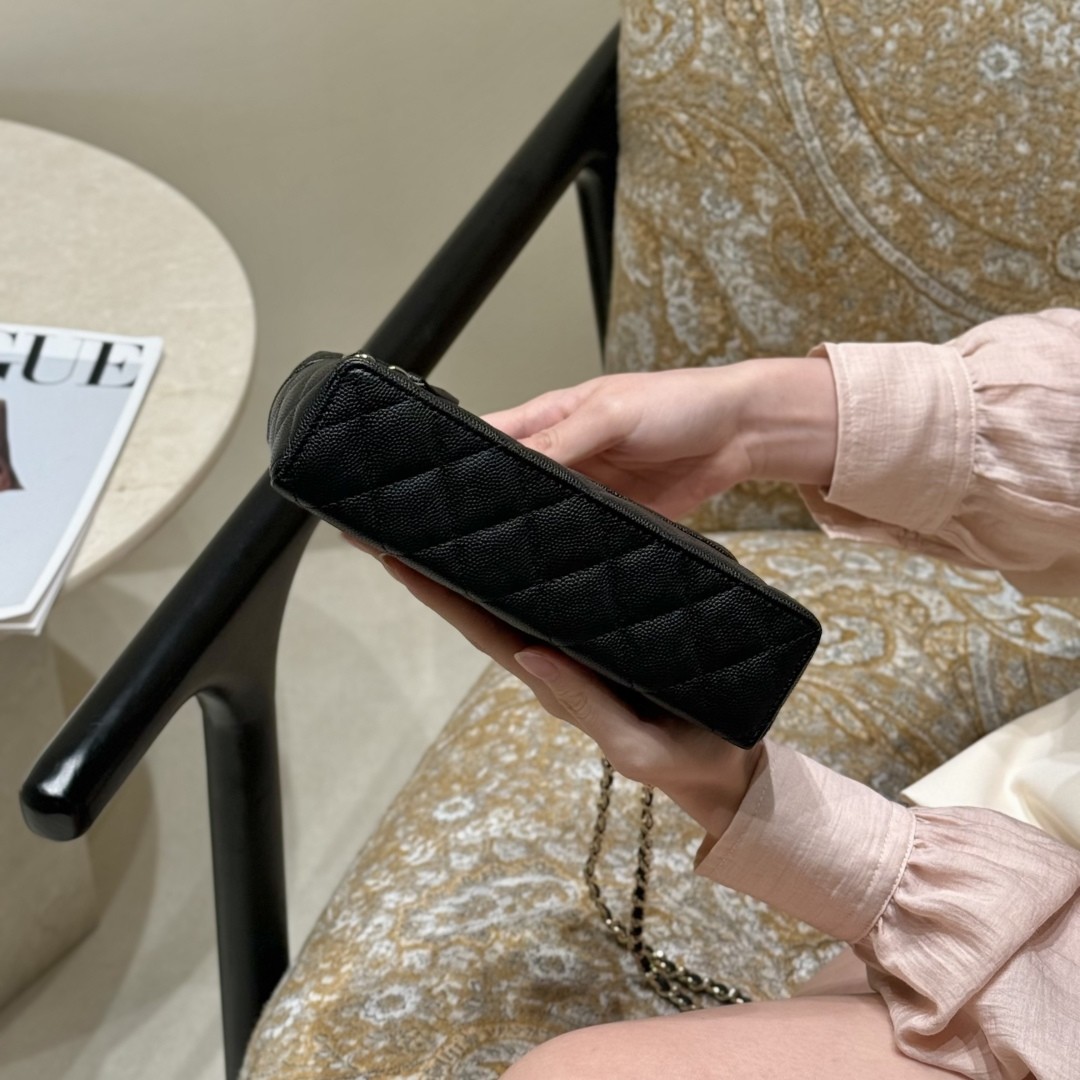 샤넬 롱 체인 코스메틱 케이스 램스킨 & 실버 메탈 블랙