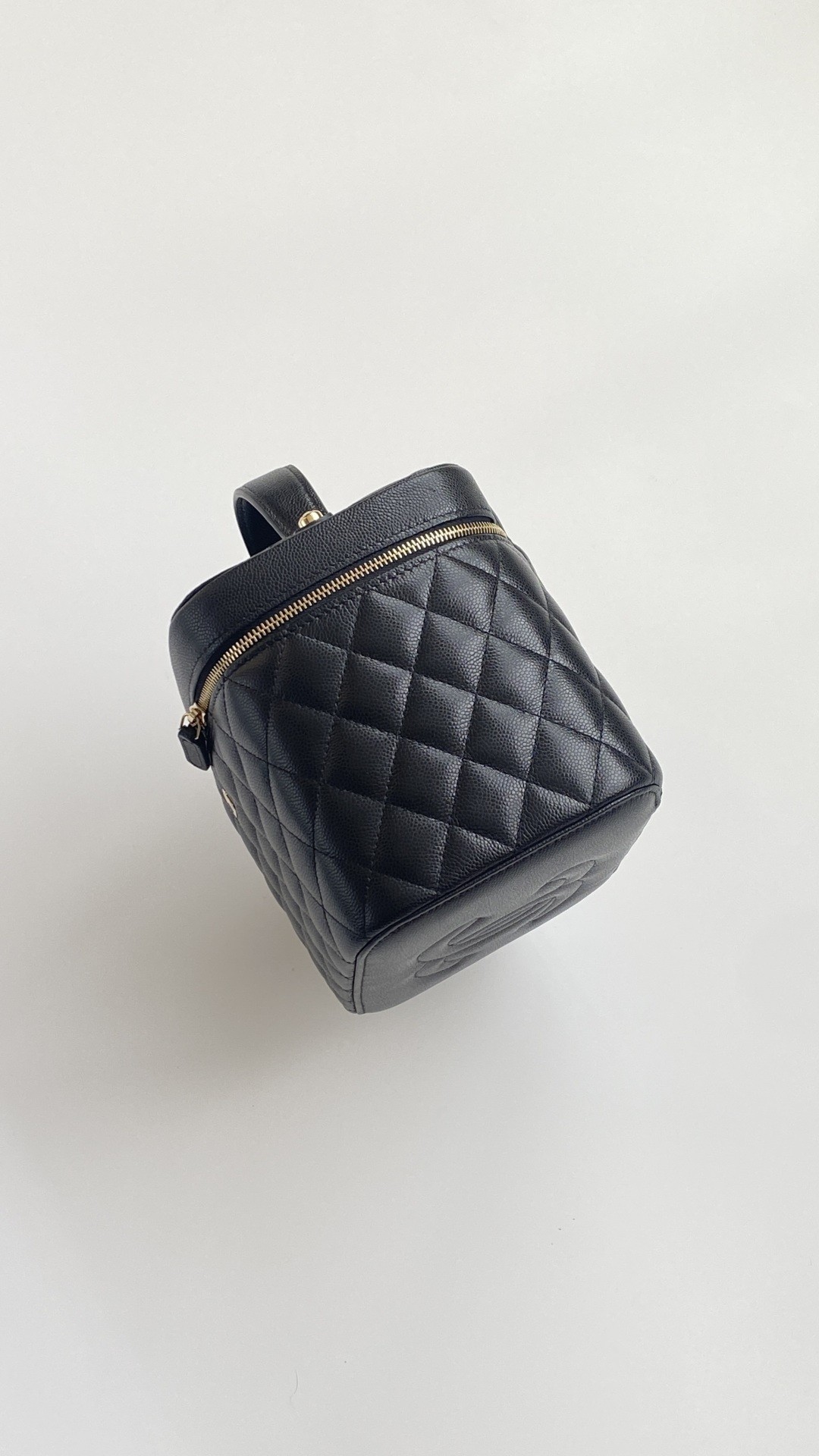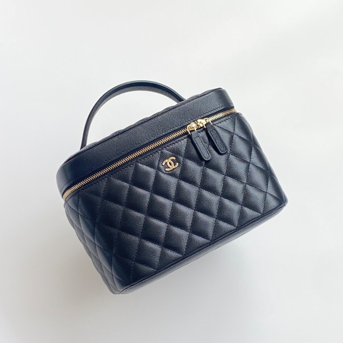샤넬 AP2573 클래식 베니티 파우치 그레인드 샤이니 카프스킨 블랙 금장
