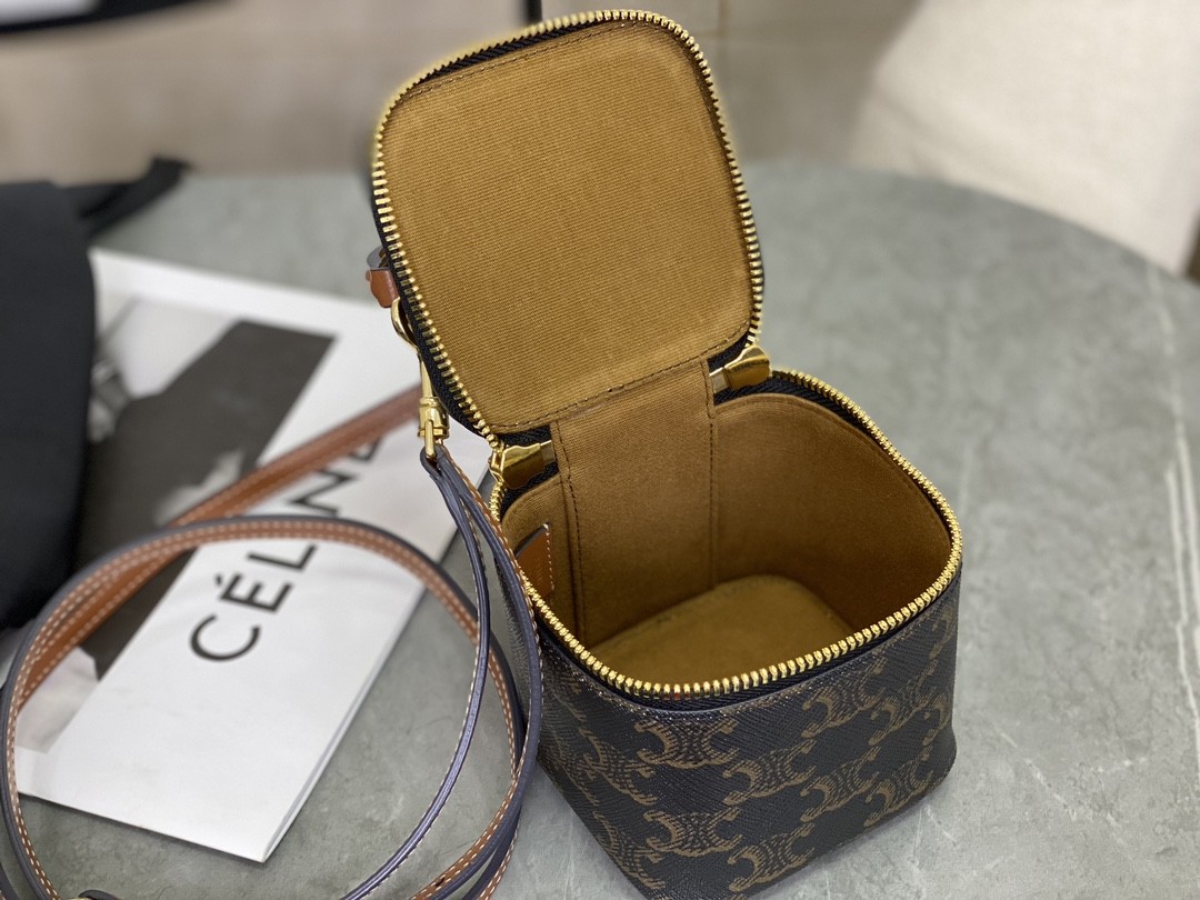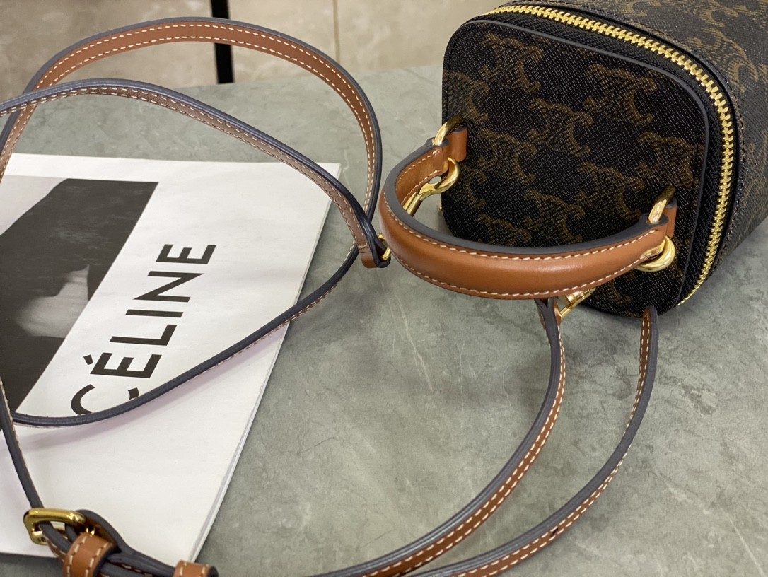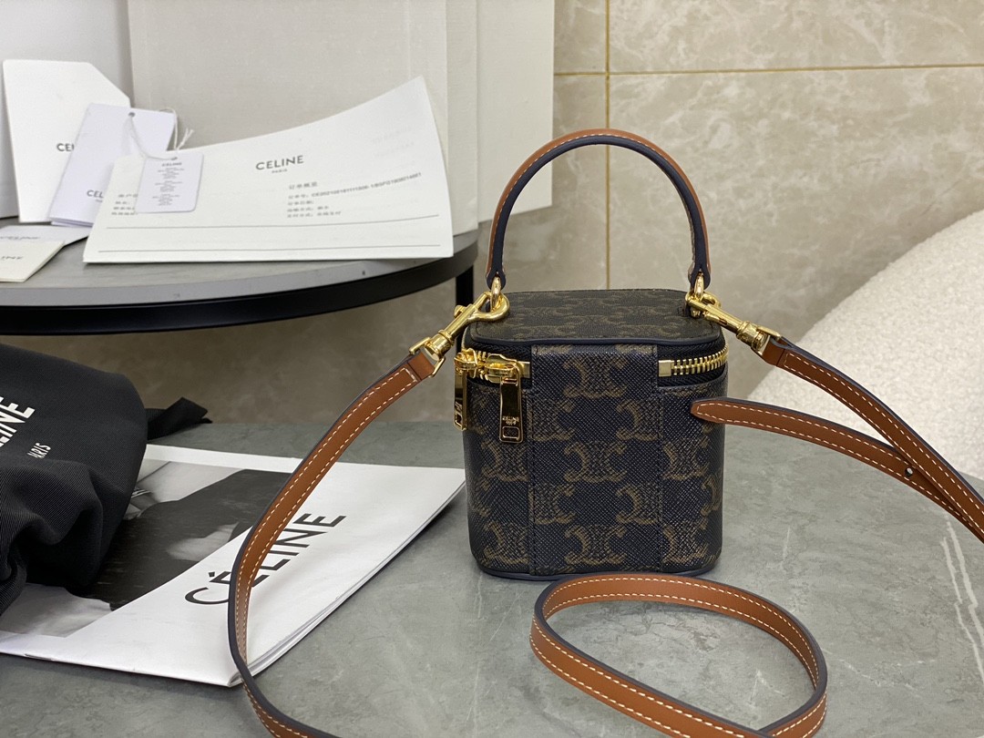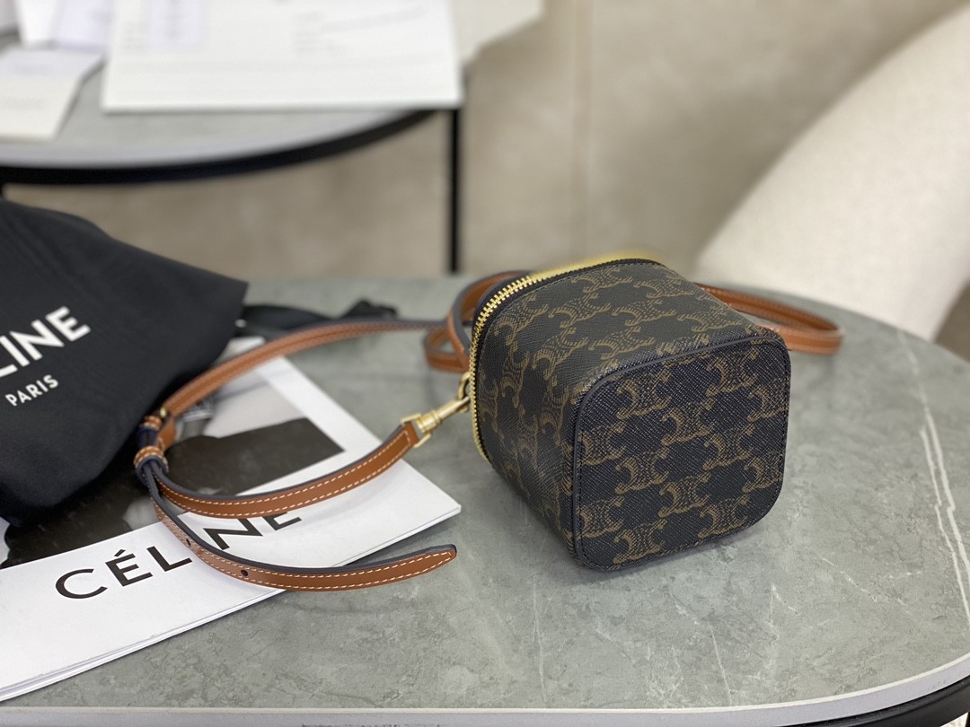셀린느 미니 베니티 케이스 트리옹프 캔버스 탄 10J762