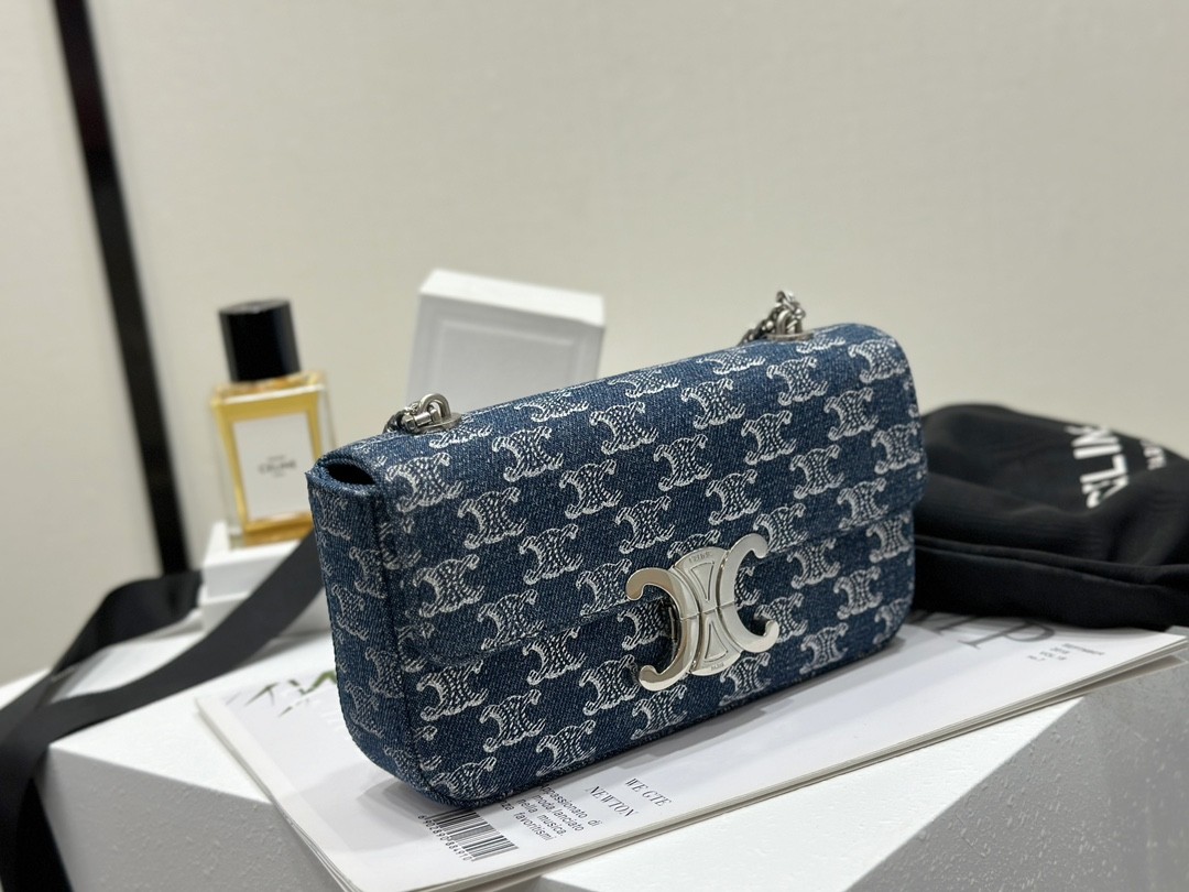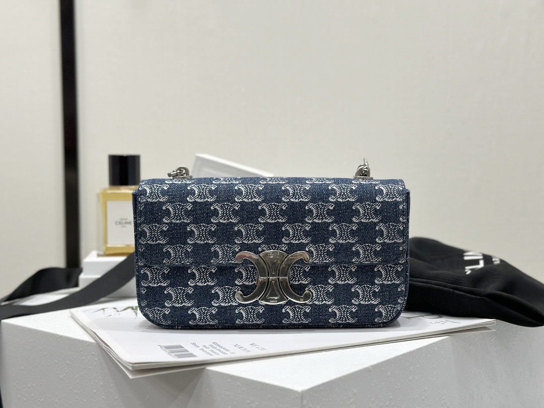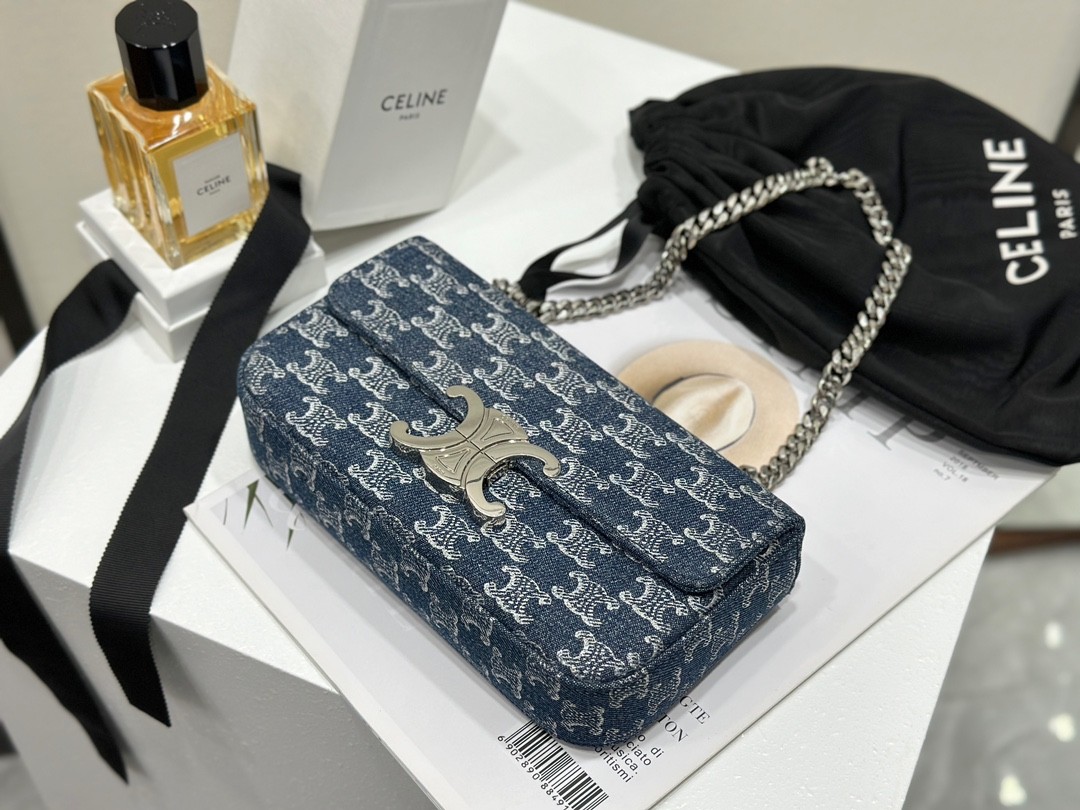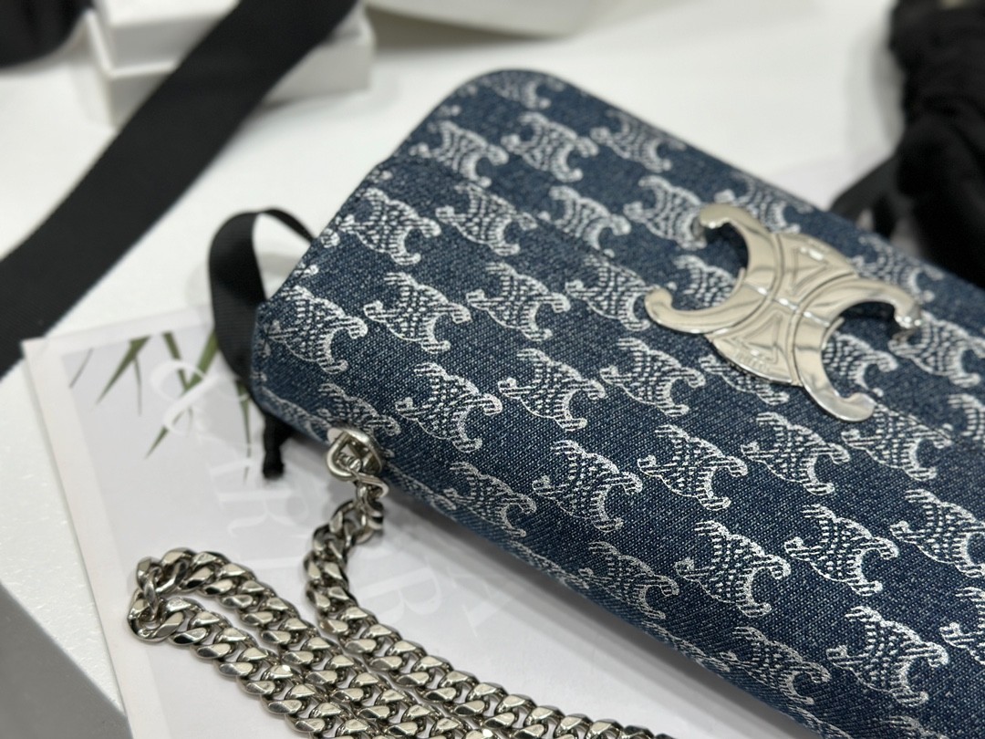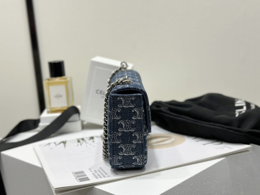 셀린느 체인 숄더백 클로드 데님 트리옹프 올오버 데님 실버