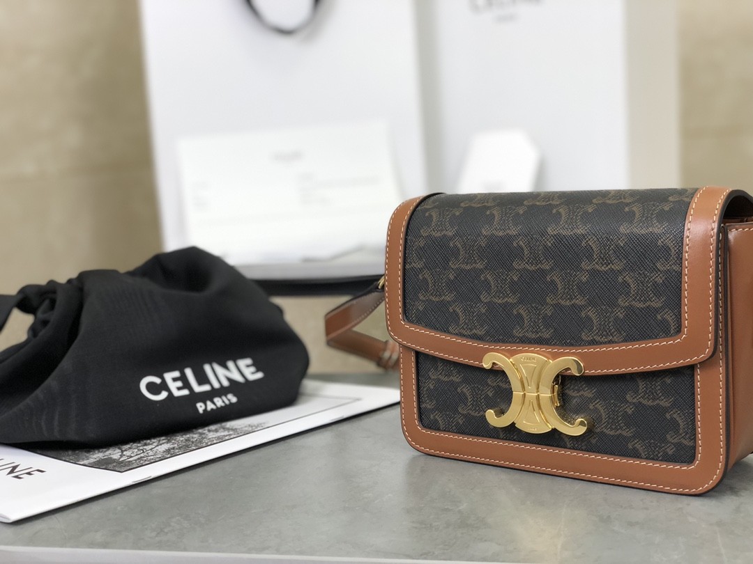 셀린느 클래식 트리오페 숄더백 스몰 블랙 탄 188882