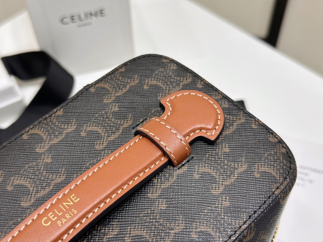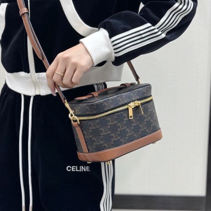 셀린느 탑 핸들 스몰 세면도구 케이스 트리옹프 캔버스 & 카프스킨