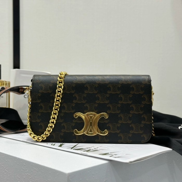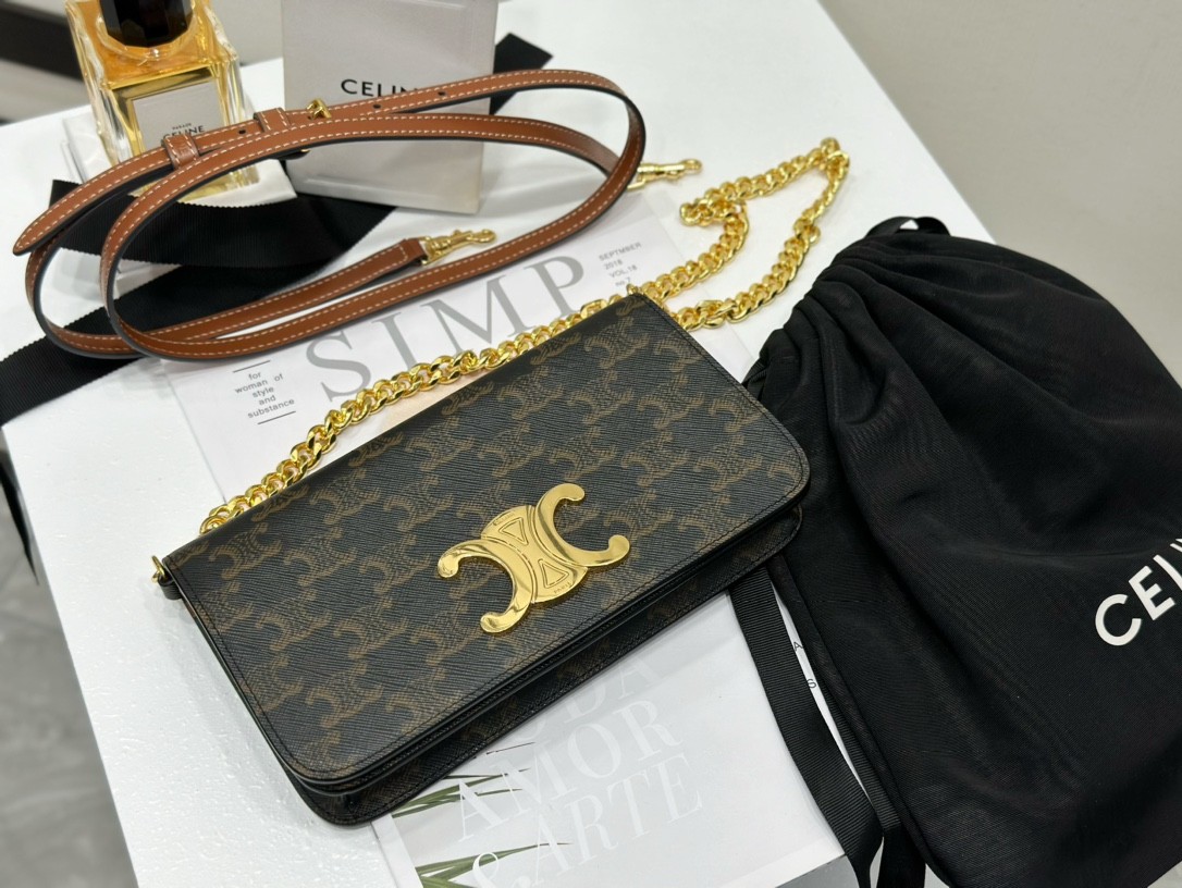 셀린느 트리오페 멀티 포쉐트 캔버스 카프스킨 탄 숄더백 10L972