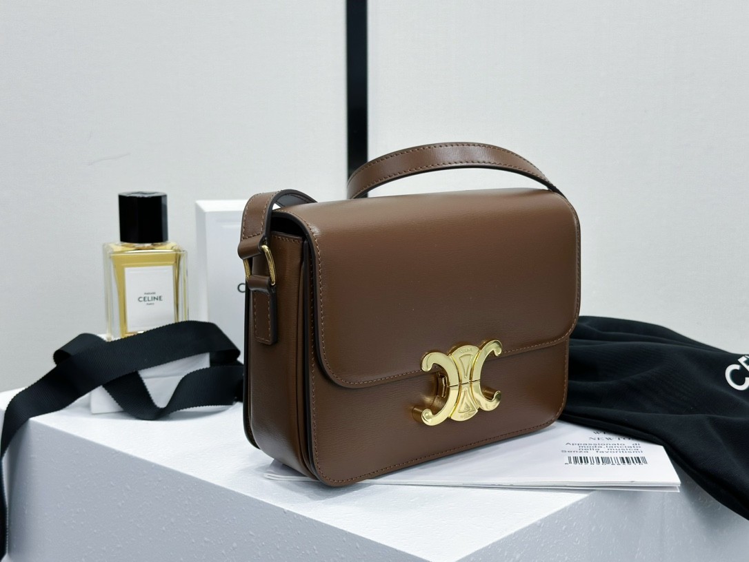 셀린느 트리옹프 클래식 샤이니 숄더백 스몰 브라운 188423