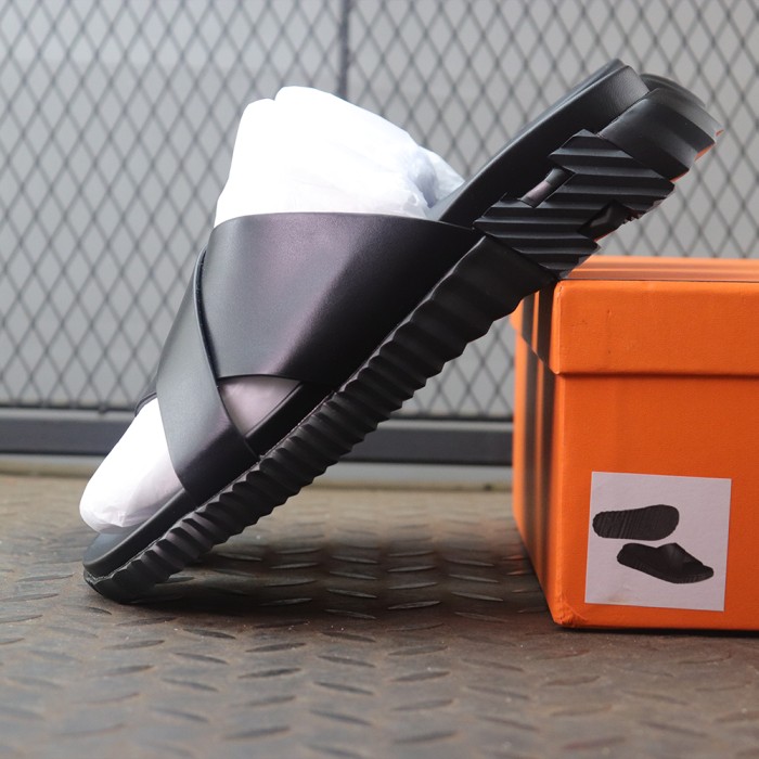 에르메스 인프라 샌들 카프스킨 스웨이드 고트스킨 & 누아