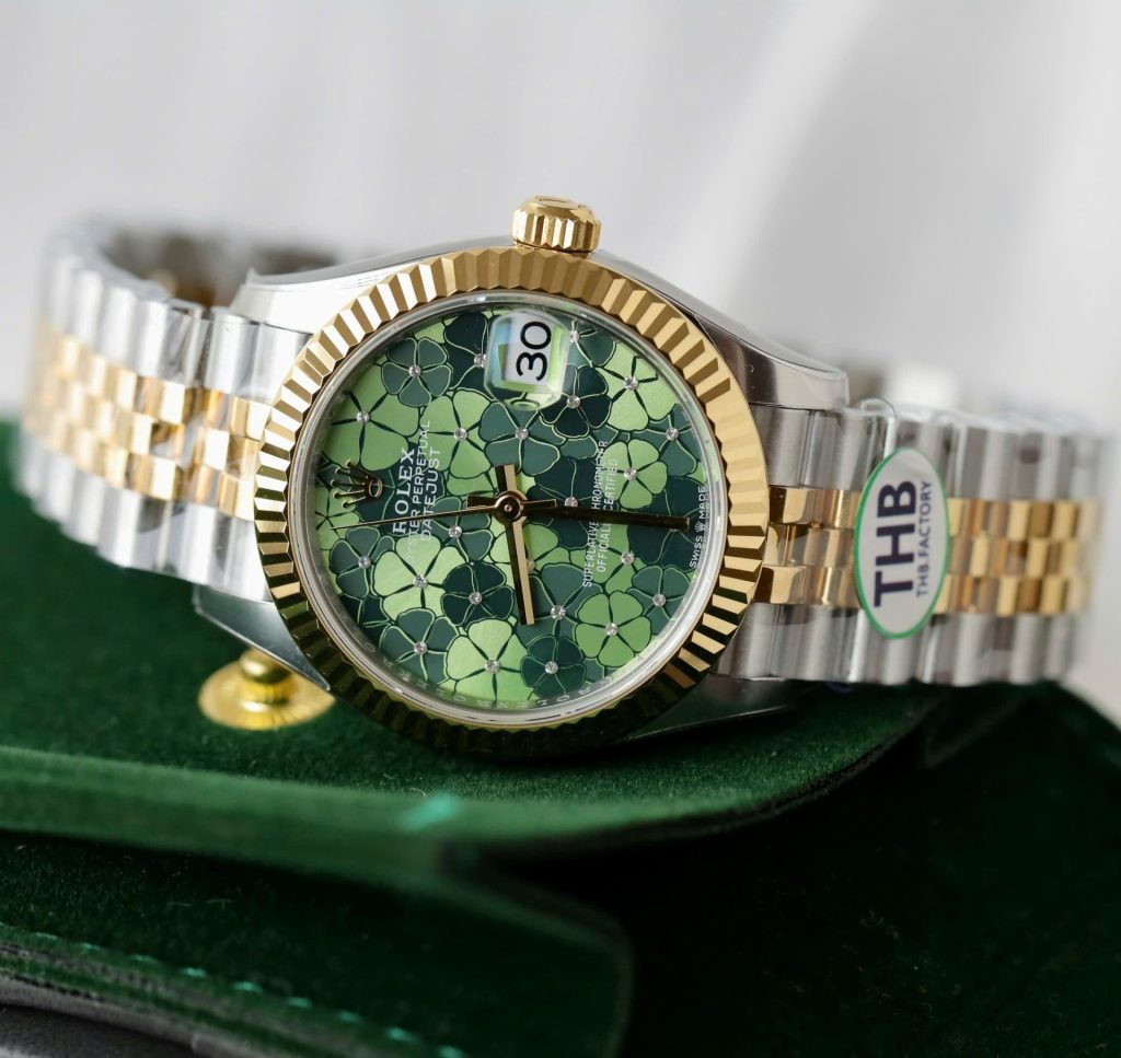 여성용 롤렉스 데이저스트 그린 플라워 다이얼 옐로우 골드 콤비 31mm 278273