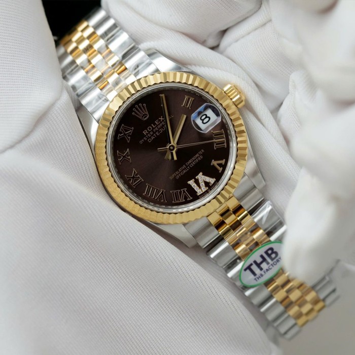 여성용 롤렉스 데이저스트 브라운 로만 다이얼 옐로우 골드 콤비 31mm 278273