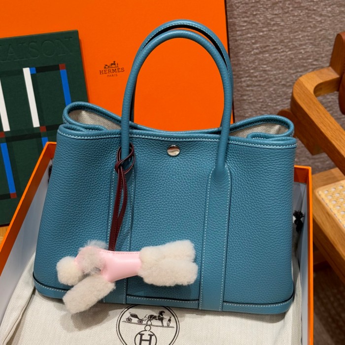 올수공 에르메스 가든파티 30 75/Blue Jean vache 실버 하드웨어