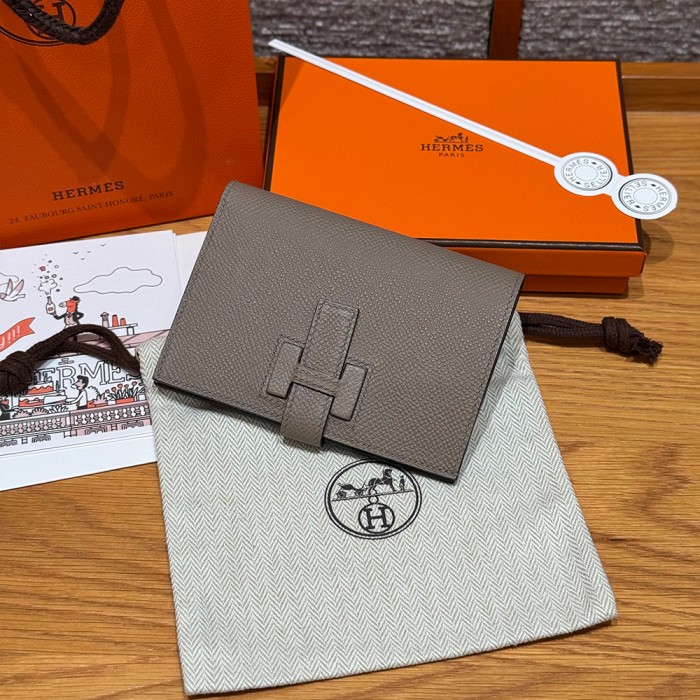 올수공 에르메스 뉴 파상트 반지갑 Gris Asphalted 엡송 가죽 실버 하드웨어