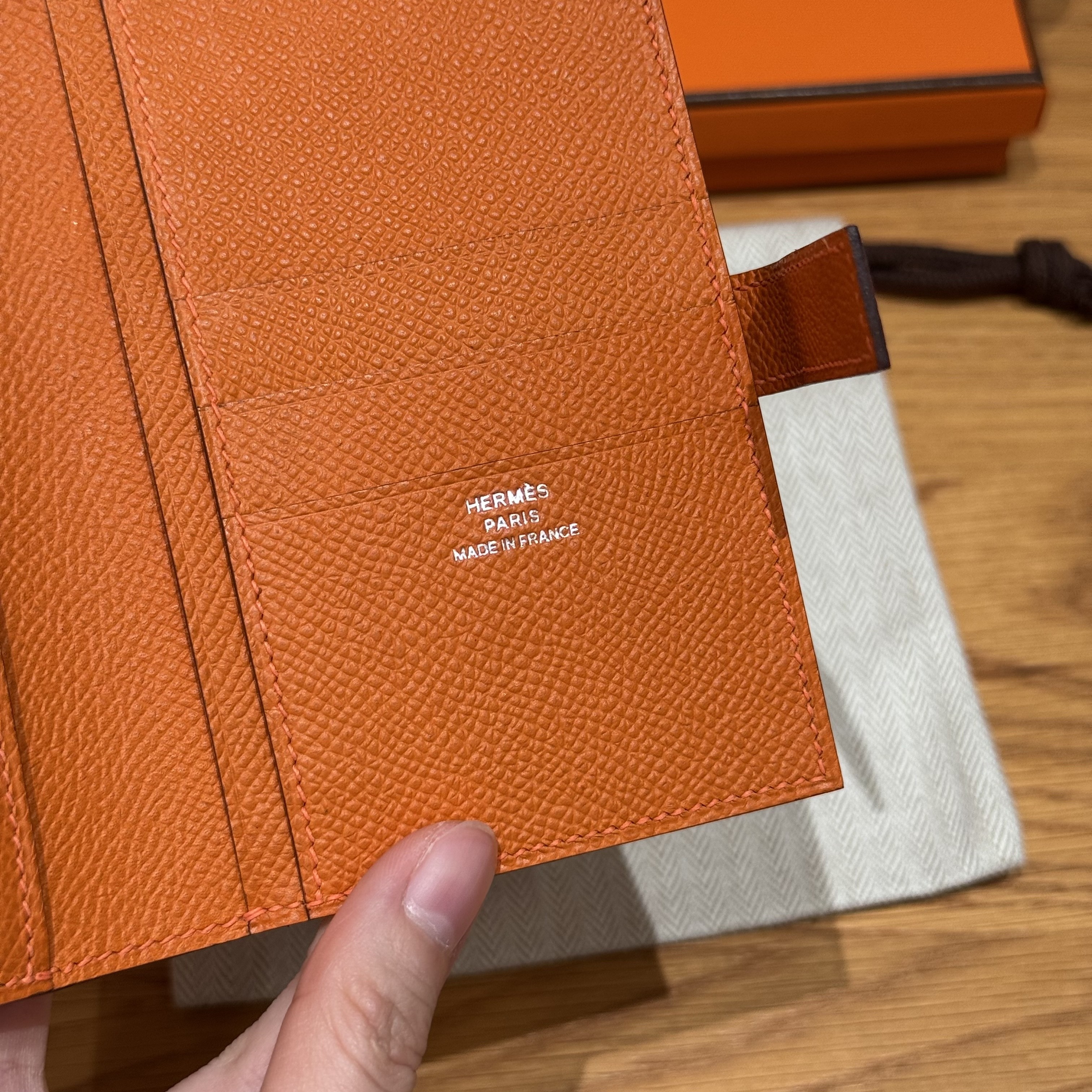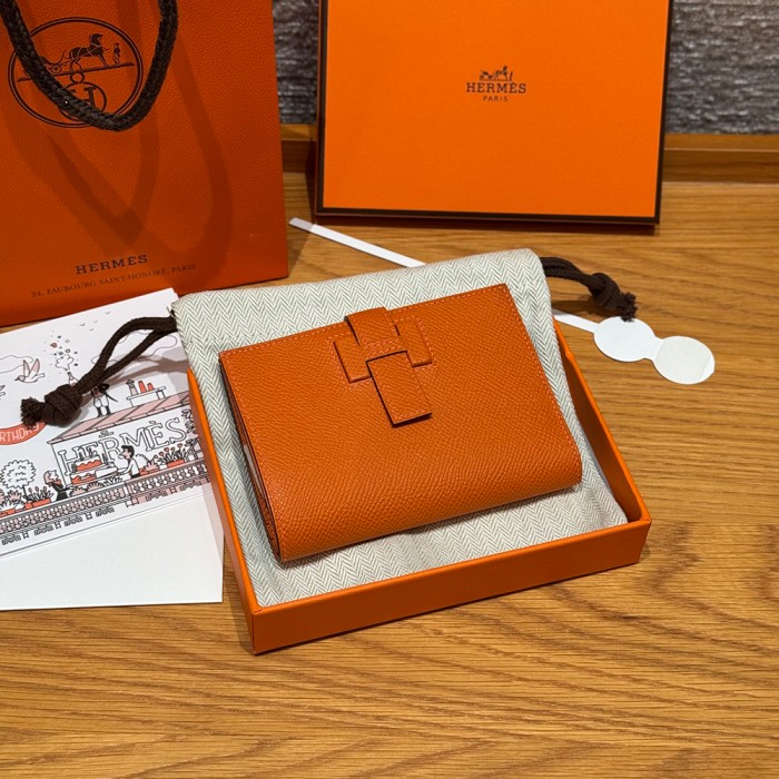 올수공 에르메스 뉴 파상트 반지갑 Orange 엡송 가죽 실버 하드웨어