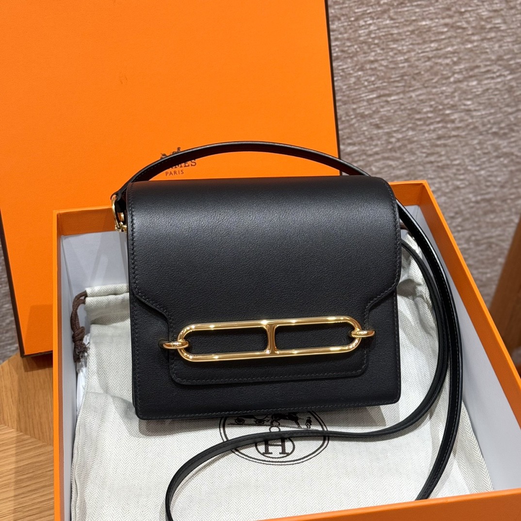 올수공 에르메스 롤리스 18 Noir 스위프트 가죽 골드 하드웨어