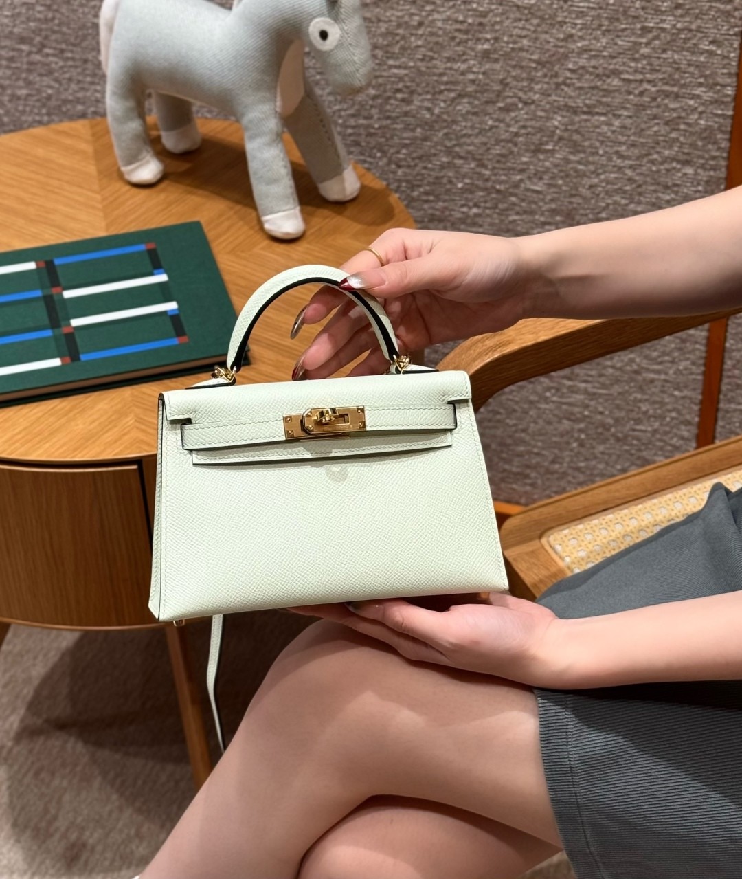 올수공 에르메스 미니 켈리 0S/Vert Fizz 엡송 가죽 골드 하드웨어